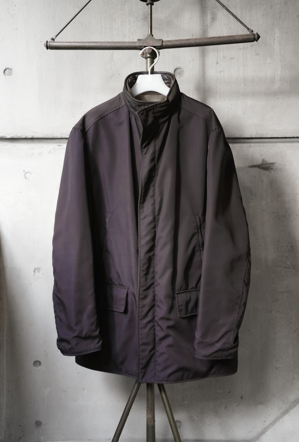 レザー面は、艶やかで滑らかな表情が魅力。一方のグレンチェック柄のポリエステル地は、知的で控えめなエレガンスを演出。気分やシーンに応じて自在に表情を変える、まさに“着るアート”。