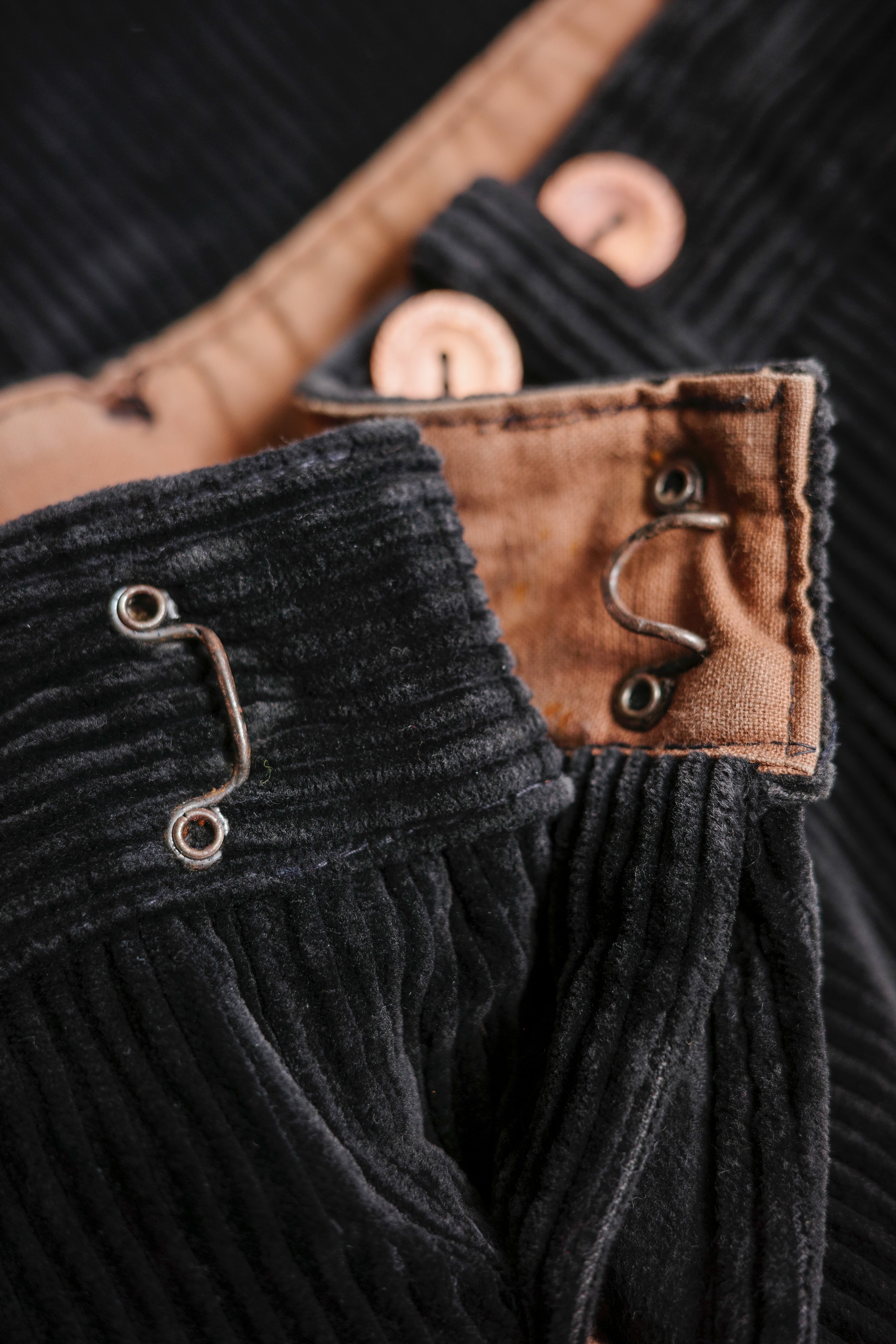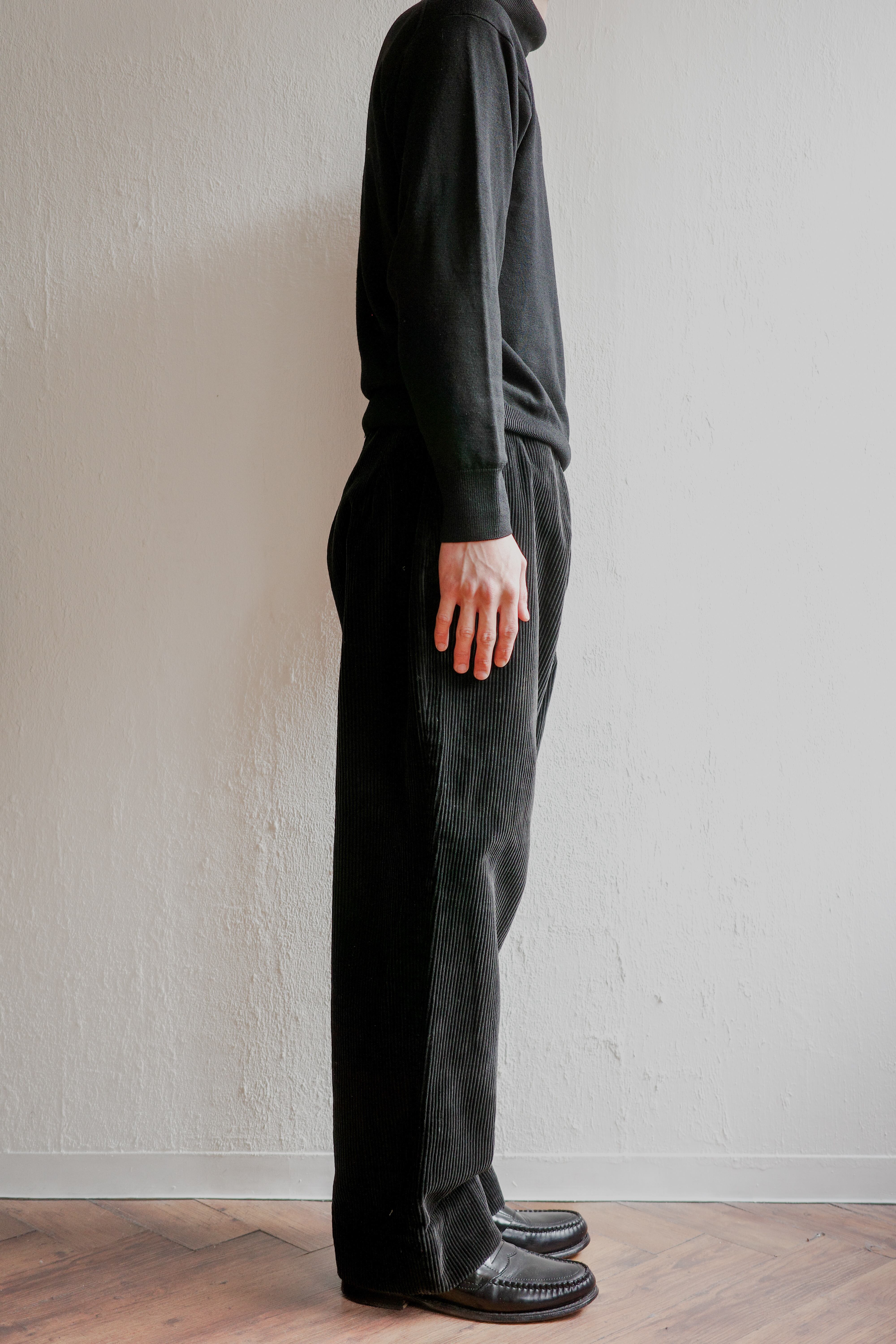 フランスワークらしい太畝コーデュロイを用いたミントコンディションでブラックカラーのトラウザース