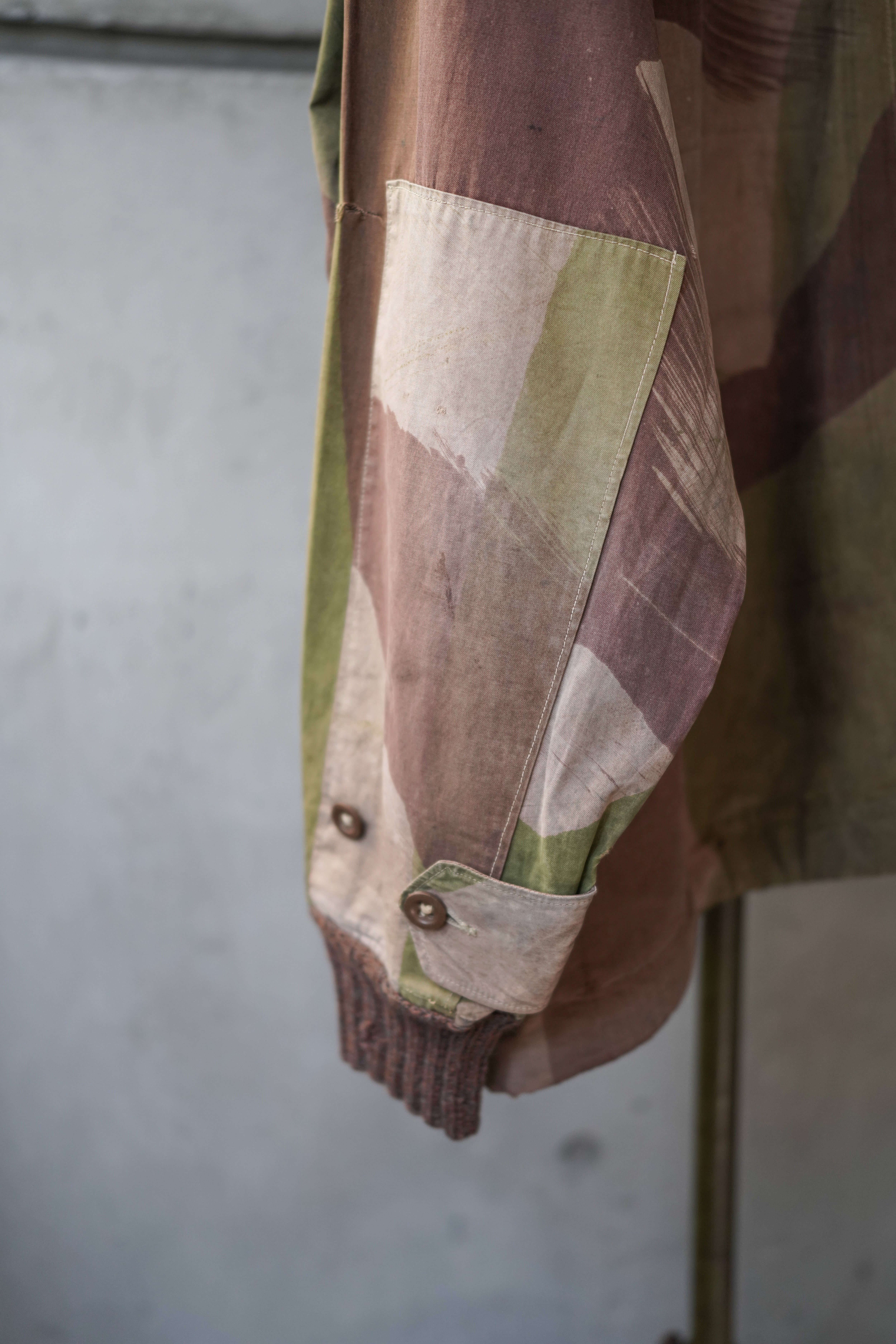 北アフリカ戦線やイタリアでの戦地を想定して開発された、これまた不朽の名作的パターンとなる「ブラッシュストロークカモフラージュ」パターンを採用した一着で御座いまして、ローラー印刷機を使用して製造されたとされます。