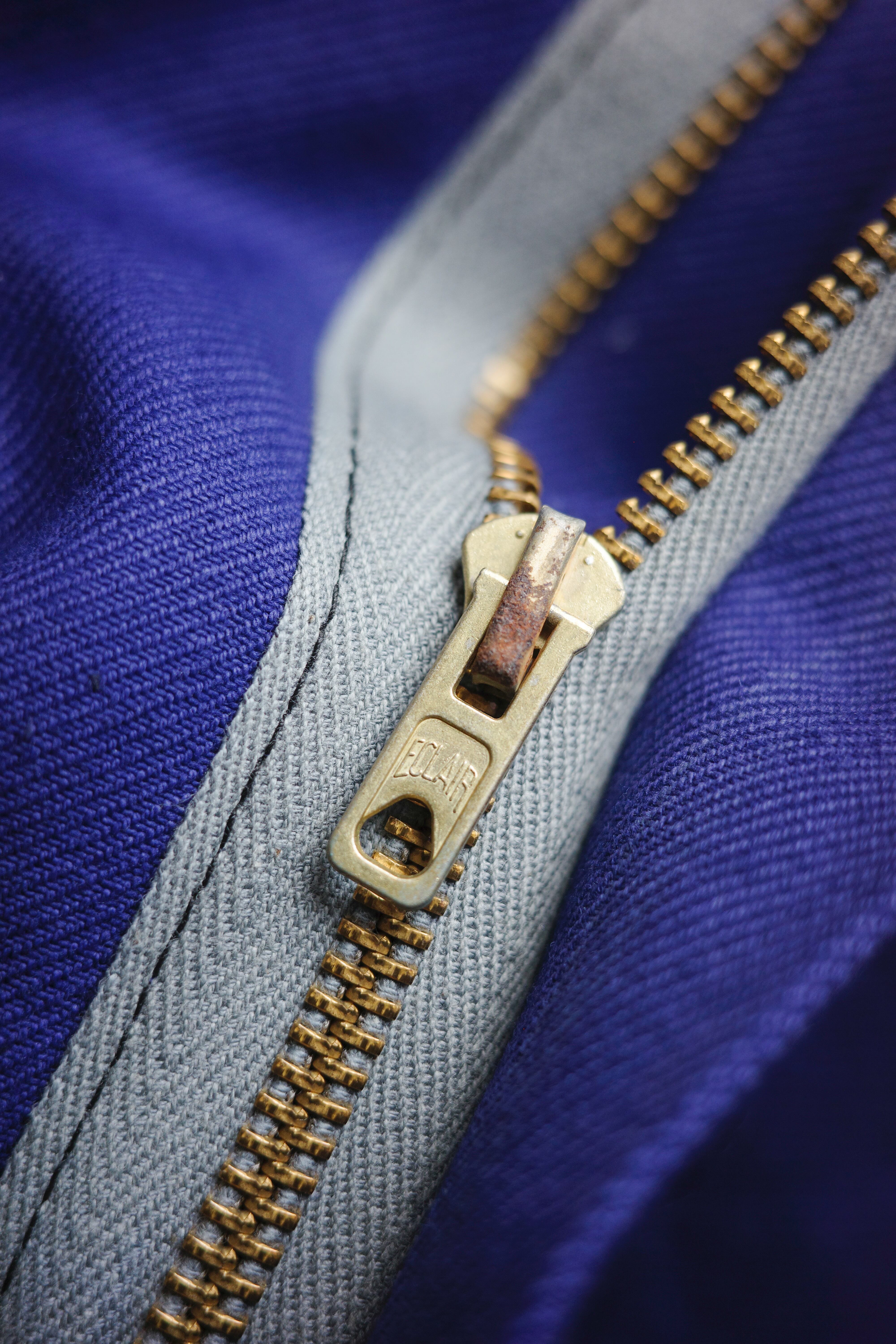 一着はフランスを代表するEclair社のジップを、もう一着は同じくヴィンテージジッパーとして知られるSPIDEX社のジップを搭載。どちらも経年による金属のくすみと風合いが美しく、時の蓄積を静かに語ります。
