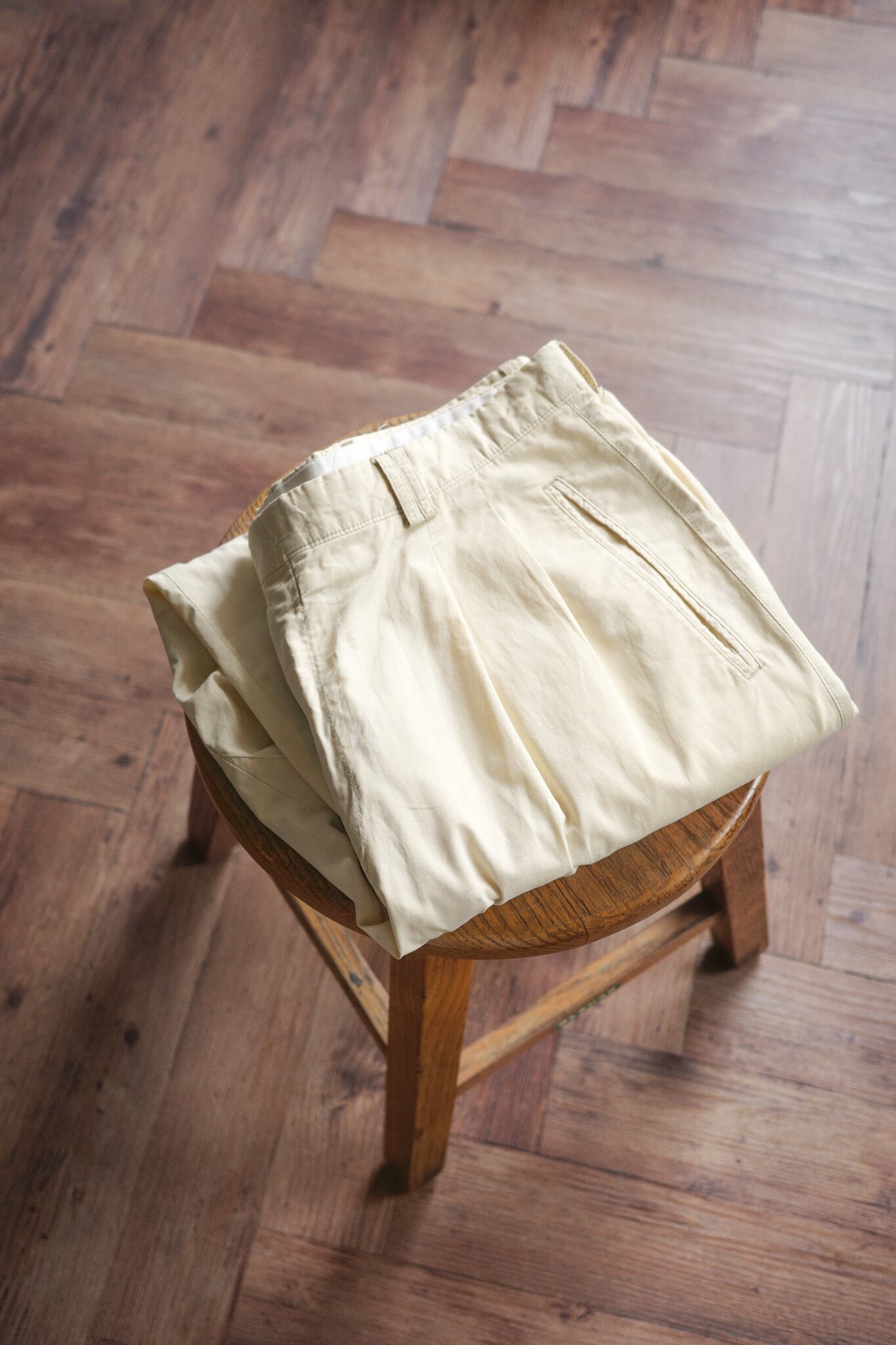 ワイドなシルエットとツータックのデザインが、どこか余裕のある雰囲気を醸し出す一着。