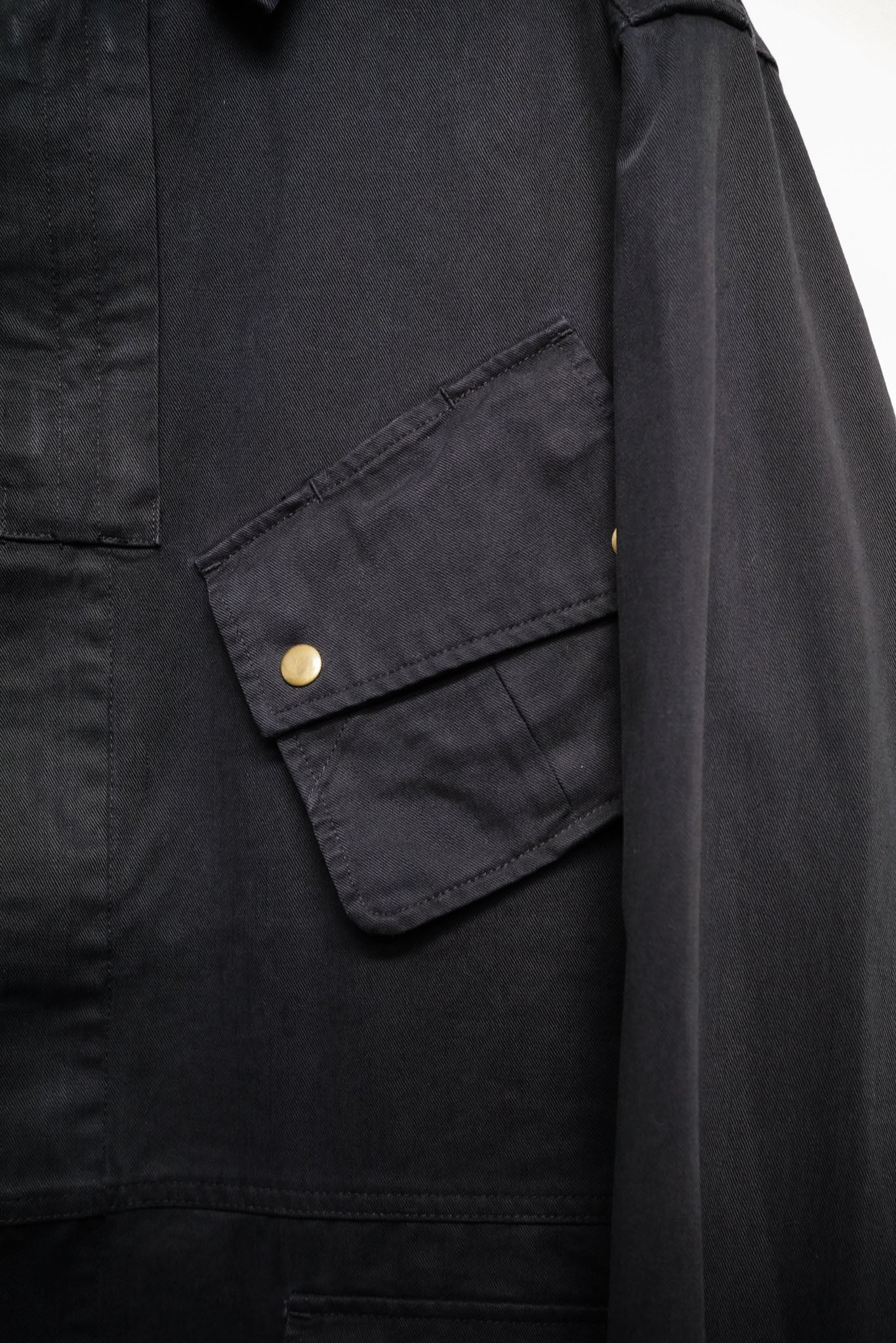 クラシカルな4ポケット仕様に、ミリタリーテイストを象徴するウエストベルトとエポーレットを備え、当時の実用美をそのままモダンに表現しています。