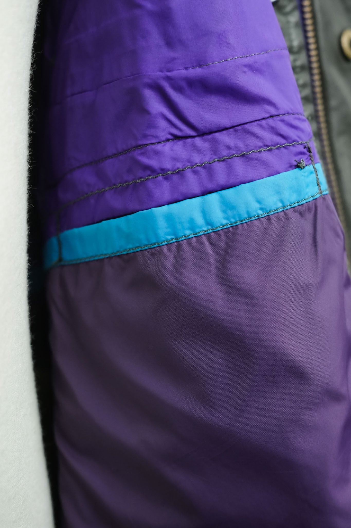 マルチポケット仕様は装飾ではなく機能を語り、ミリタリーをベースとしたフードのフォルムや、ライニングの大胆かつ唯一無二の彩色による切り替え、ジップラインの装飾性、ギミック溢れる各所のドローコード——
