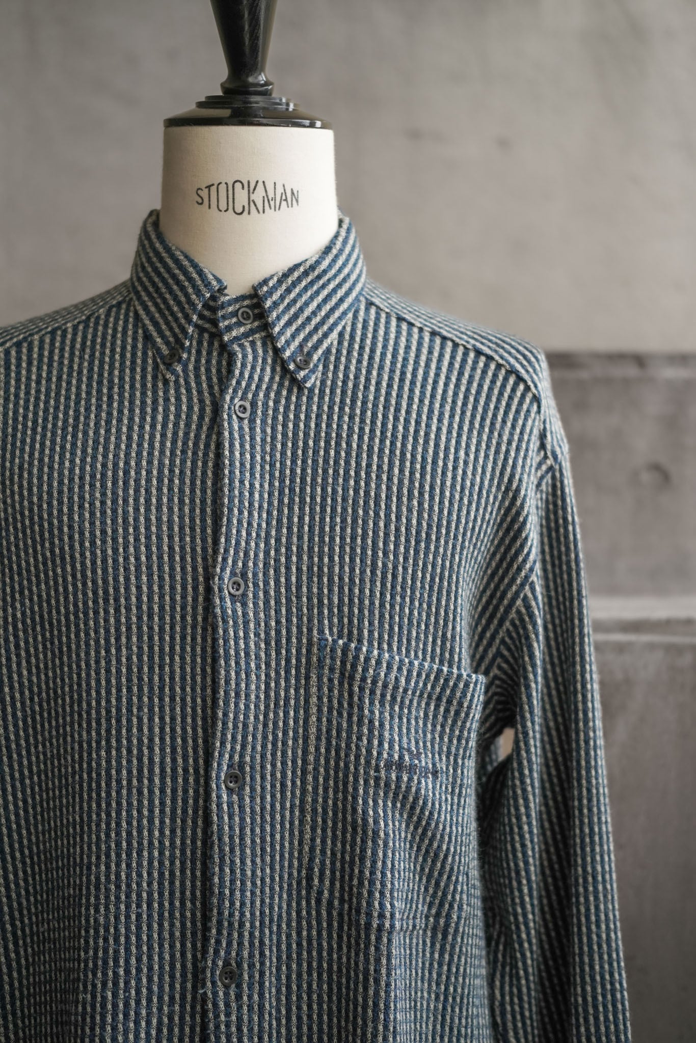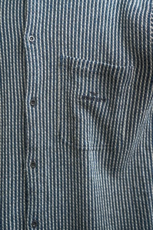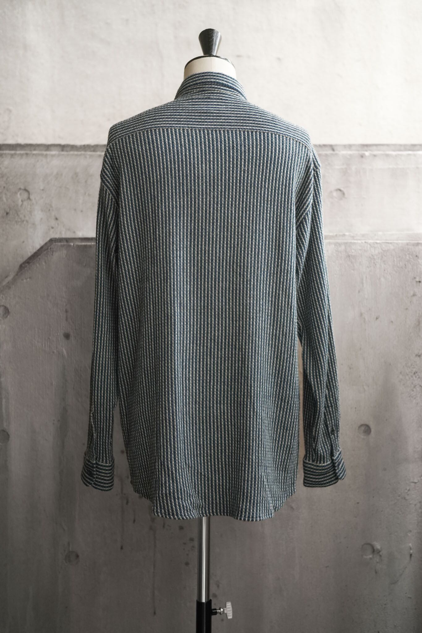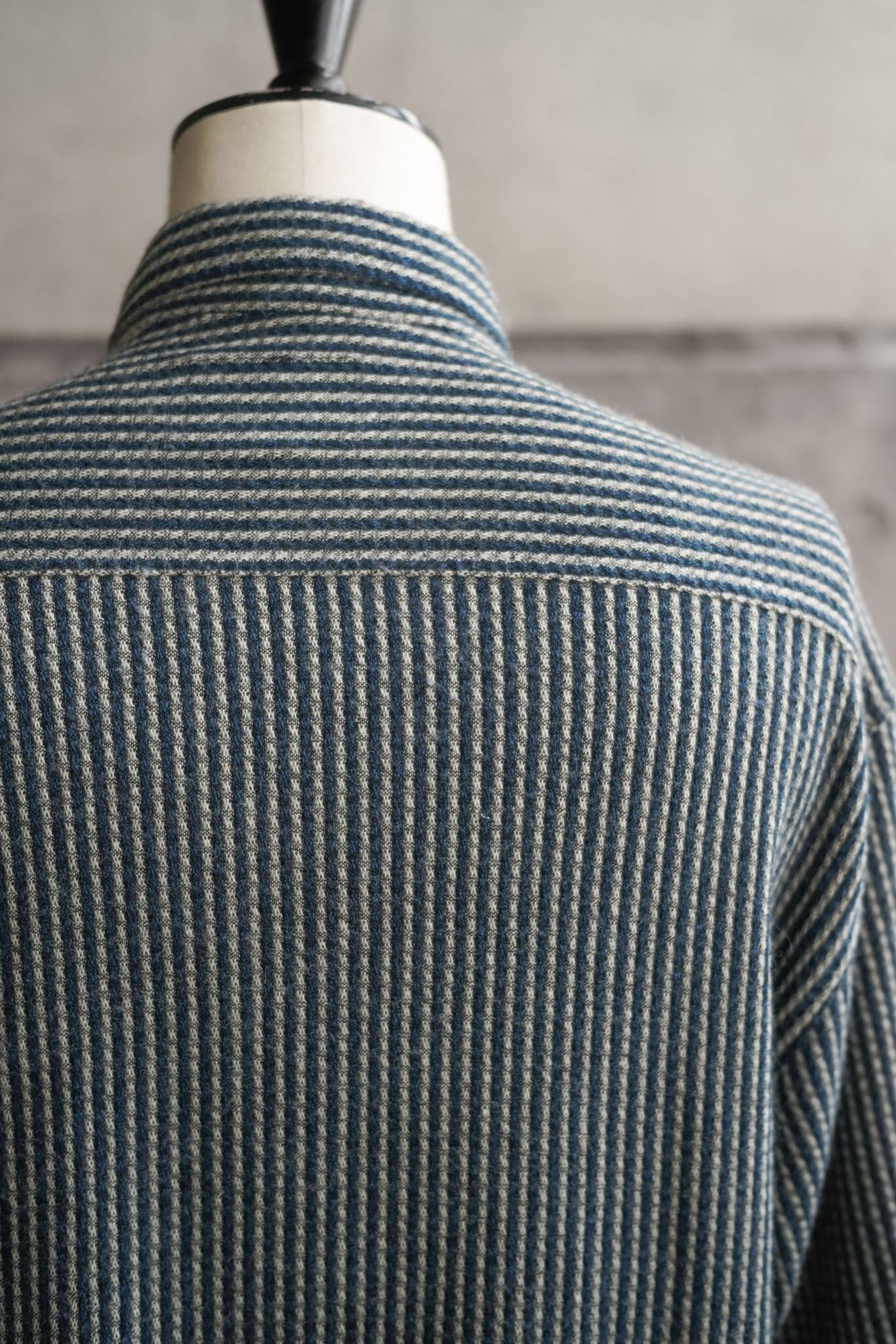 織り柄ならではの自然な陰影が、着る人の動きに合わせて静かに表情を変えるのも、このシャツならではの醍醐味。