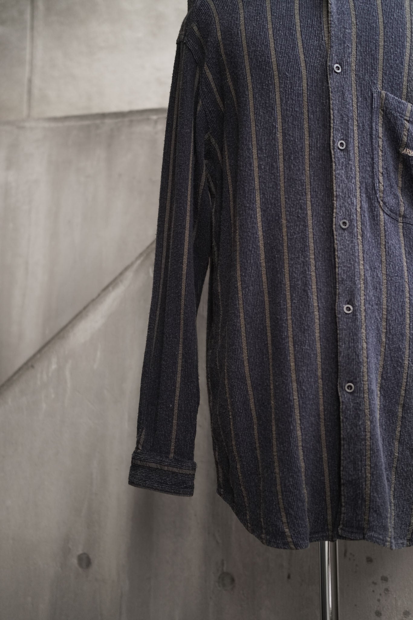 織り柄ならではの自然な陰影が、着る人の動きに合わせて静かに表情を変えるのも、このシャツならではの醍醐味。