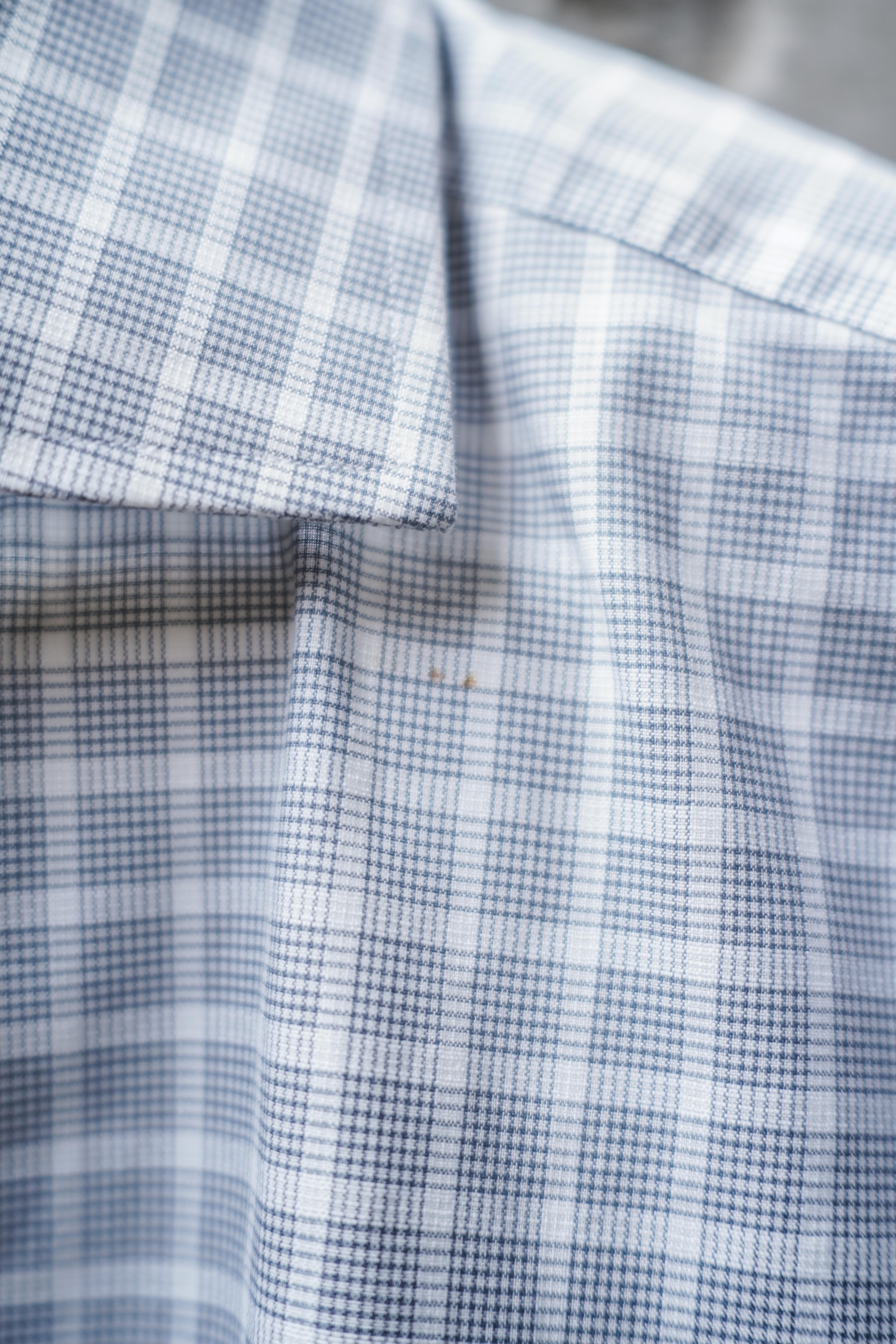無機質なグレーにグレンチェックが花を咲かせる一着。