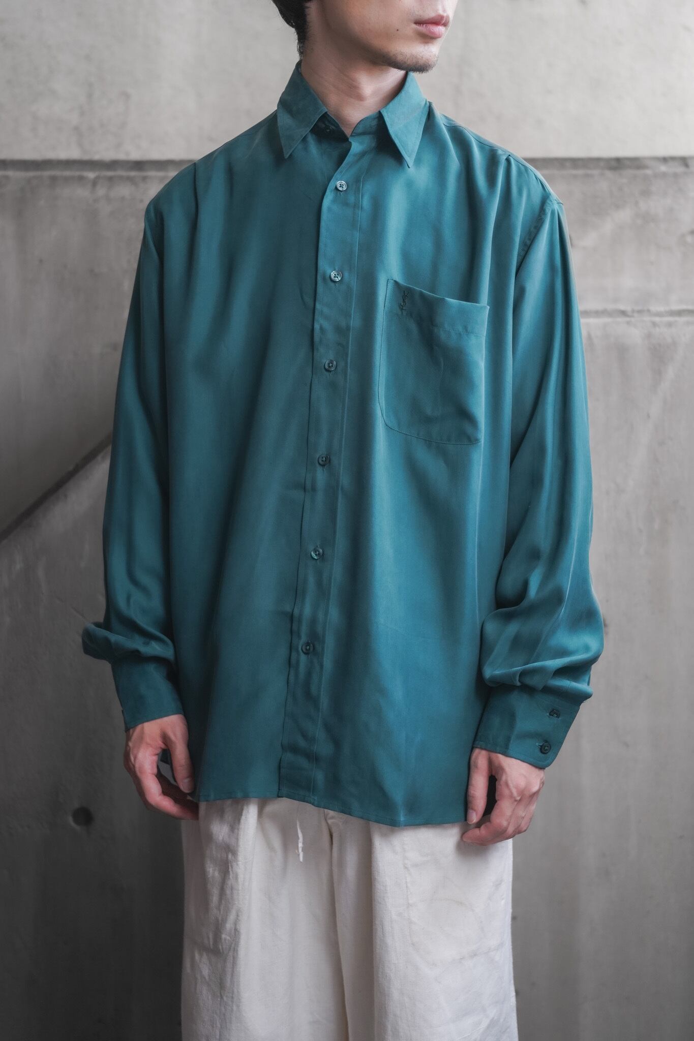 Yves Saint Laurent pour hommeによって仕立てられた、贅沢なシルク100%のシャツ。