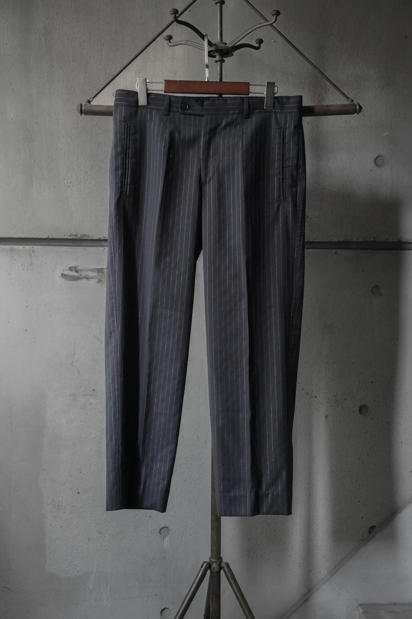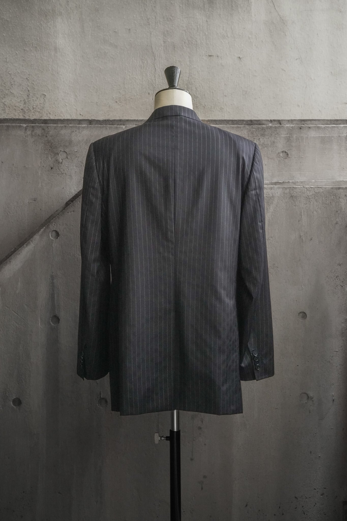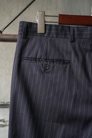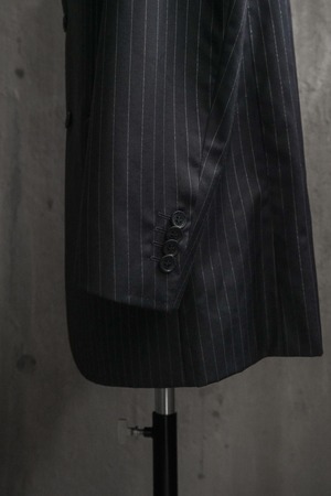ゴージャスなシルバーが縦に走る繊細なピンストライプが、イタリアらしい抒情を湛えながら、どこか禁欲的な硬質さすら感じさせます。