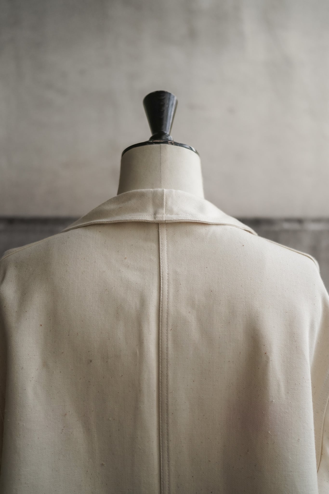 無垢な白を纏ったこのワークジャケットは、実用から美意識へと変遷するプロセスそのものを体現しているかのよう。