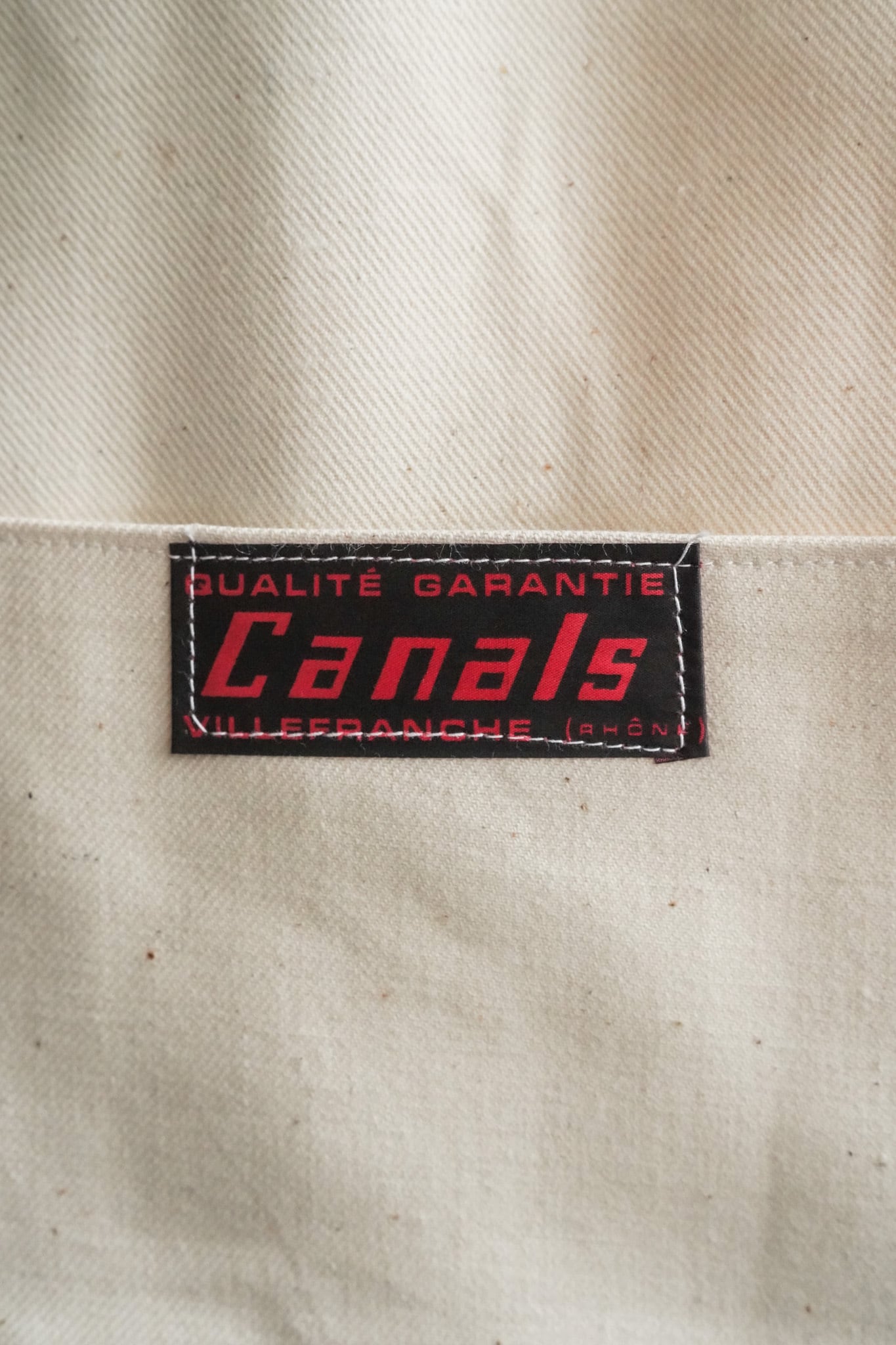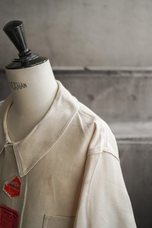 こちらは、生成りに近いナチュラルホワイトの色味が印象的な、コットンツイル地のカバーオールジャケット。