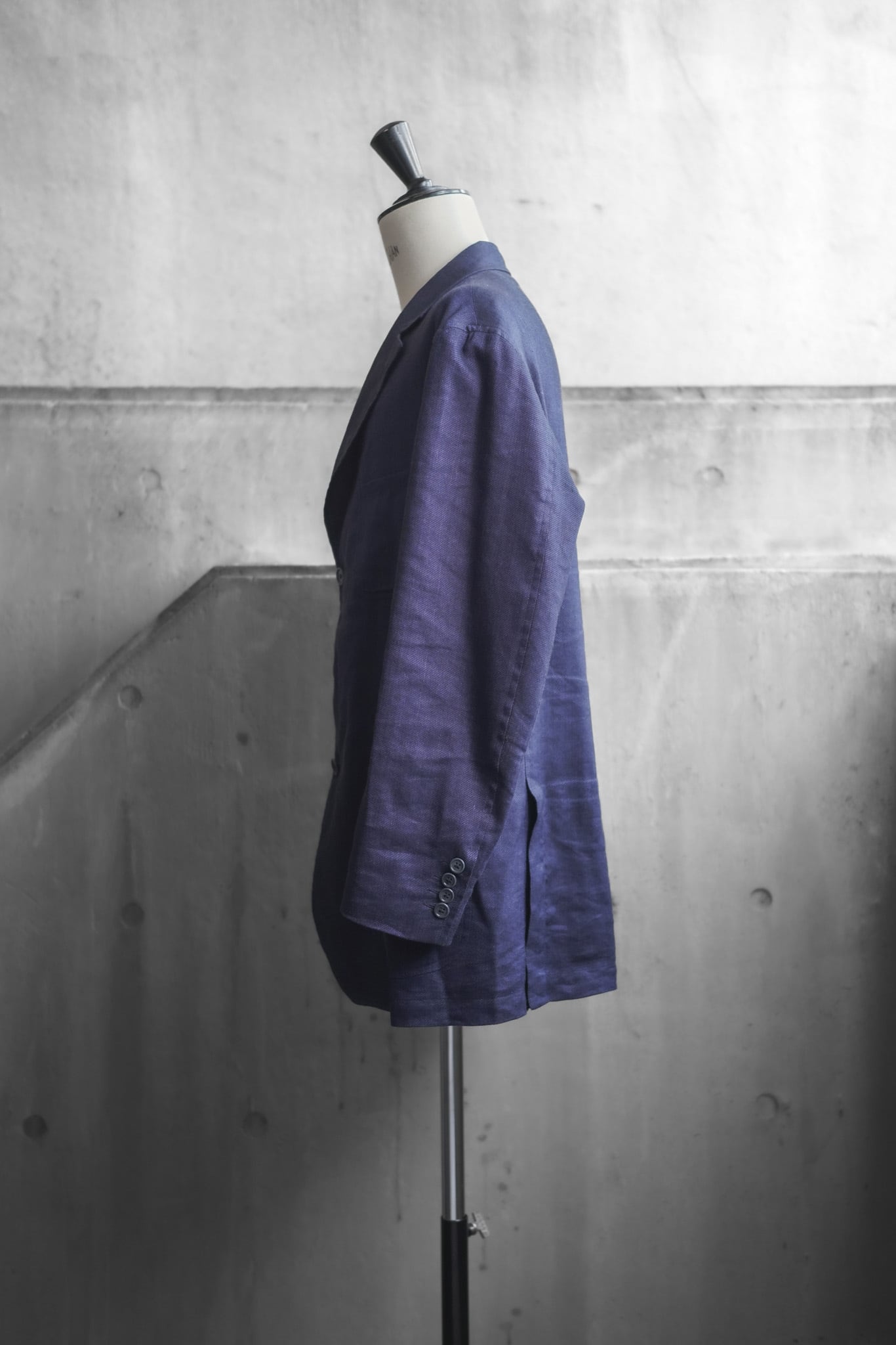 リネン特有の節のある表情に、ウールが持つ落ち感とわずかな艶が加わることで、粗野さと品格の絶妙なバランスを実現しています。