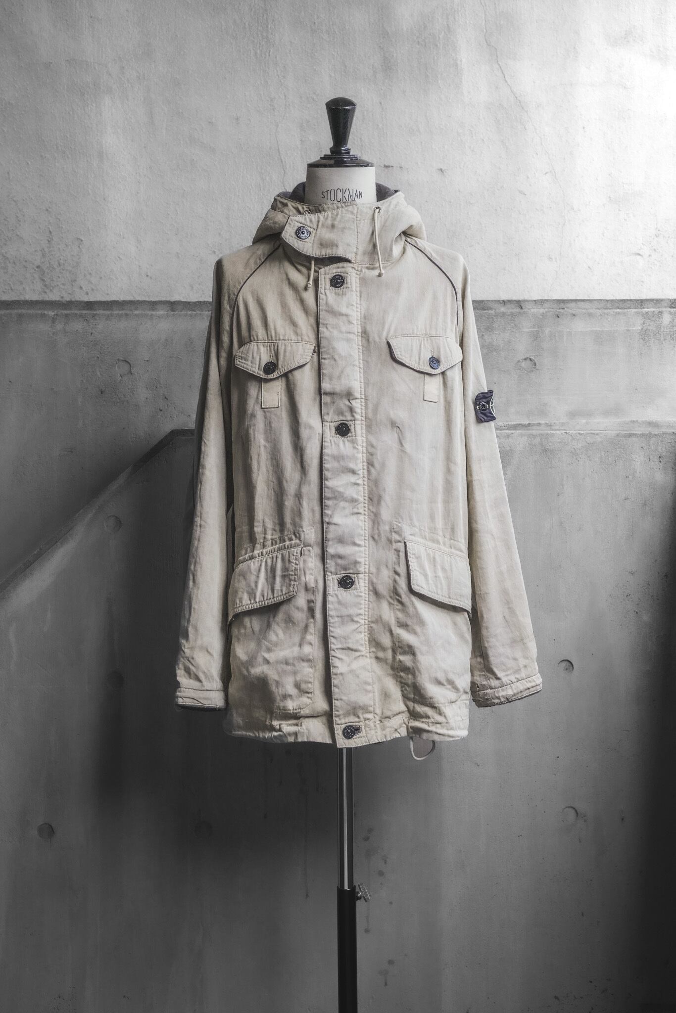 天然繊維であるリネンをベースにしながら、STONE ISLAND独自の加工技術によって高い耐久性と独特の風合いを引き出しています。