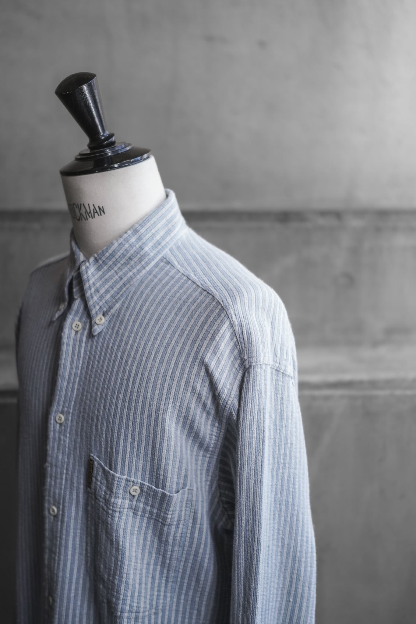 織り柄ならではの自然な陰影が、着る人の動きに合わせて静かに表情を変えるのも、このシャツならではの醍醐味。