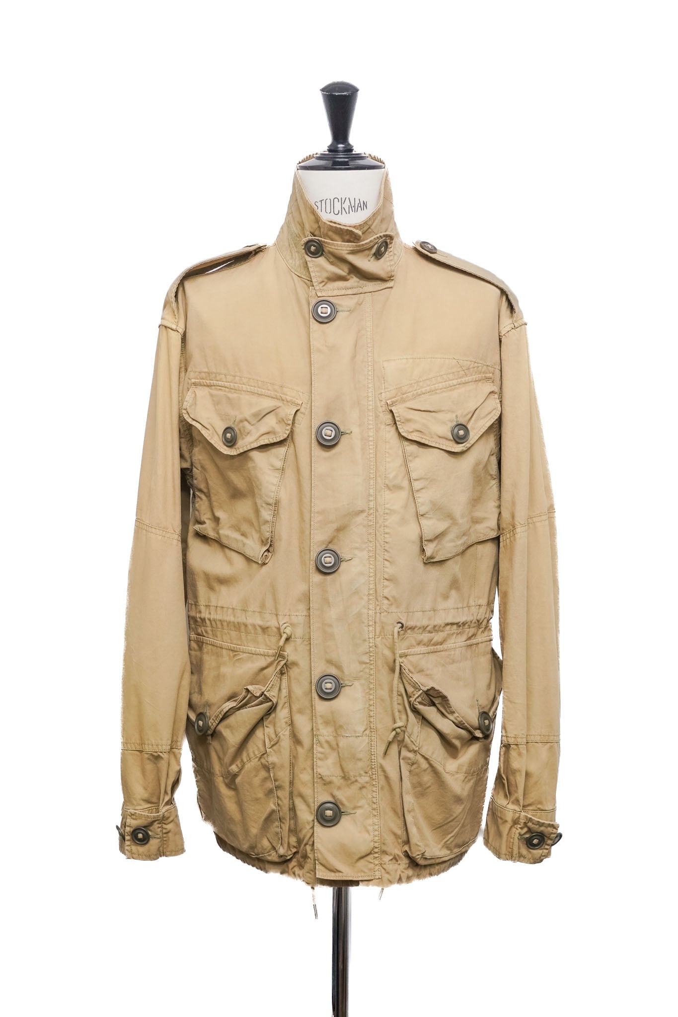 デザインのベースにはイギリス陸軍が着用していたフィールドジャケットのディテールが反映されており、当時のラルフ・ローレンが積極的に行っていた「アーカイブピースの再解釈」が色濃く感じられます。