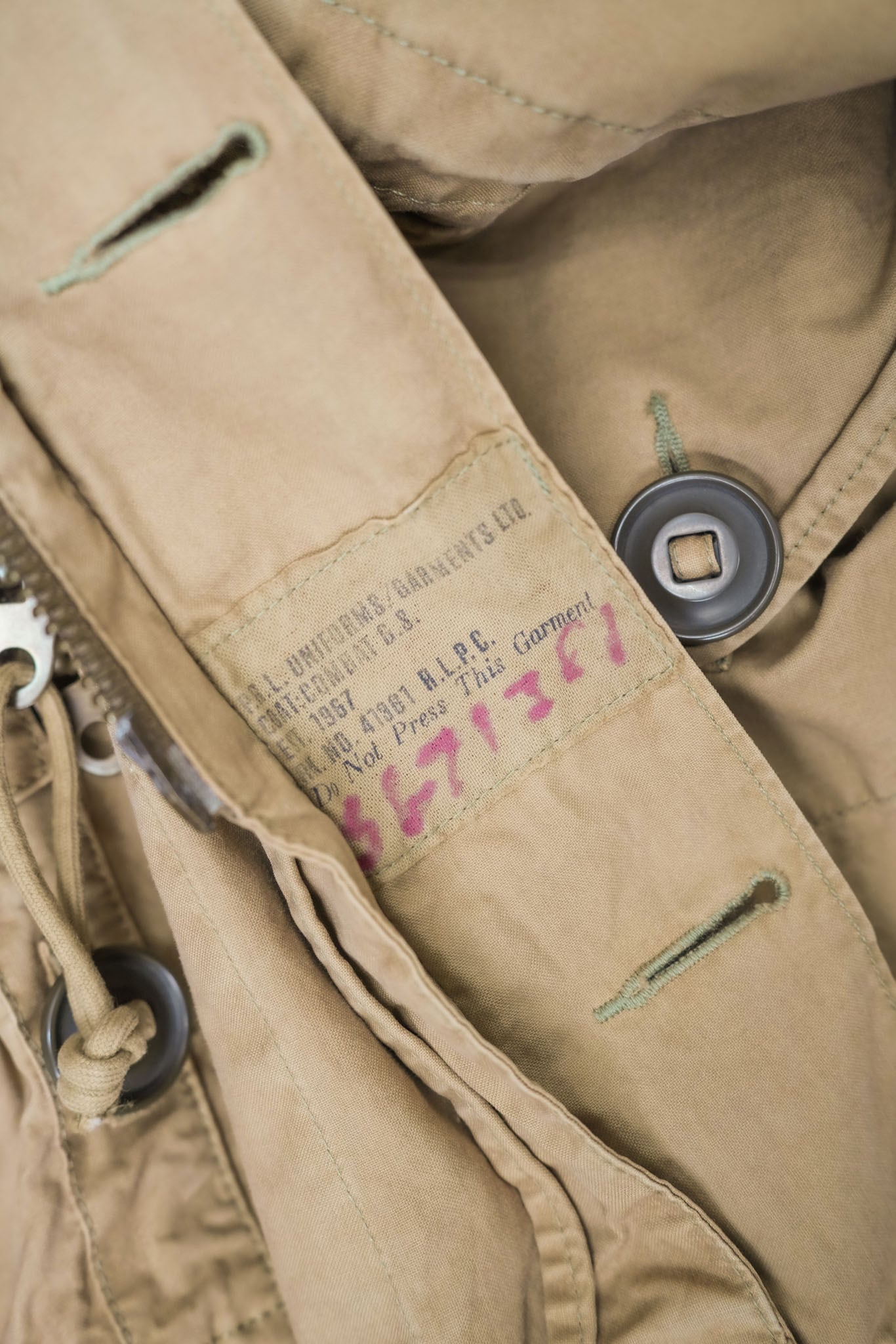 これは単なるブランドタグを超え、「本物の軍仕様に倣いながらもファッションとして再構築した」というメッセージを強く感じさせるディテールです。