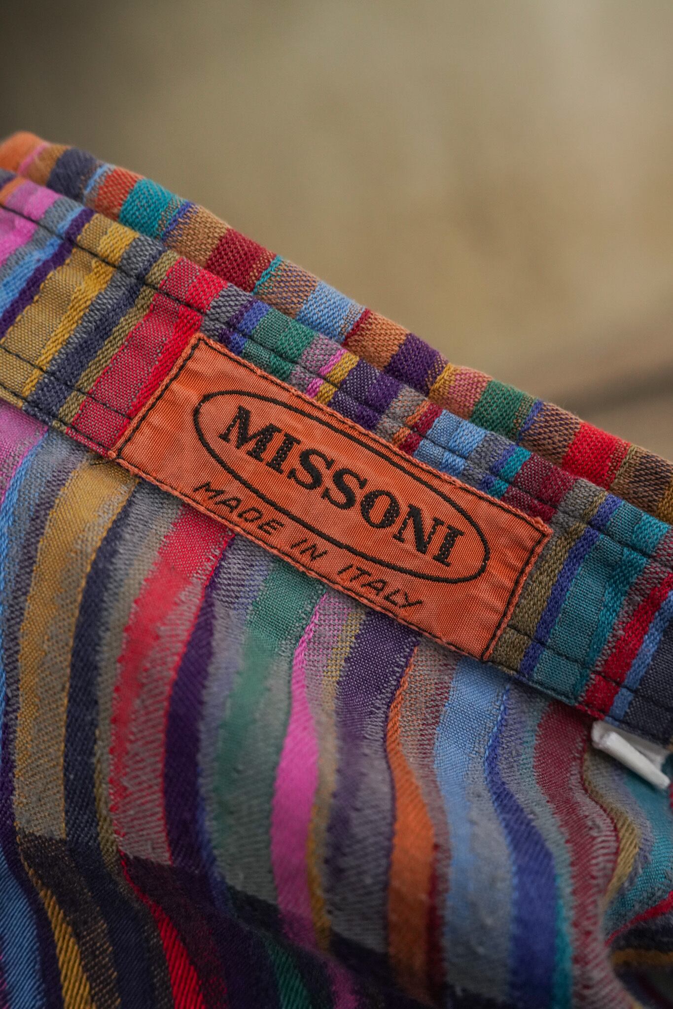 ミッソーニならではの豊かな配色とリズミカルな柄表現が全面に施されており、アーカイブとしても高い価値を誇る逸品です。