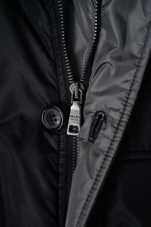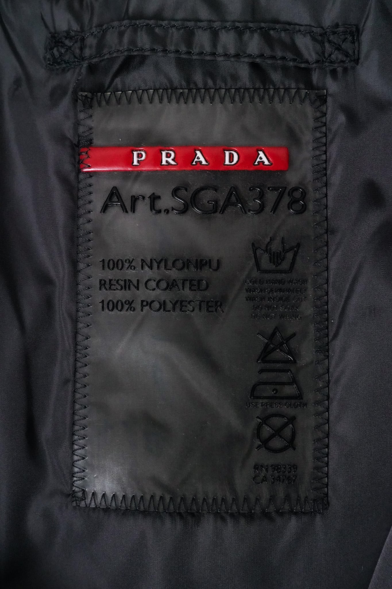 レインウェアやミリタリーのアーカイブを参照しながら、都会的なシルエットと艶のある化繊の質感で仕上げた、まさに"プラダらしい"一着です。
