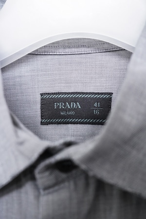 PRADAのシャツは流行語のような装飾に寄らず、比率とバランスで雰囲気をつくるのが持ち味。