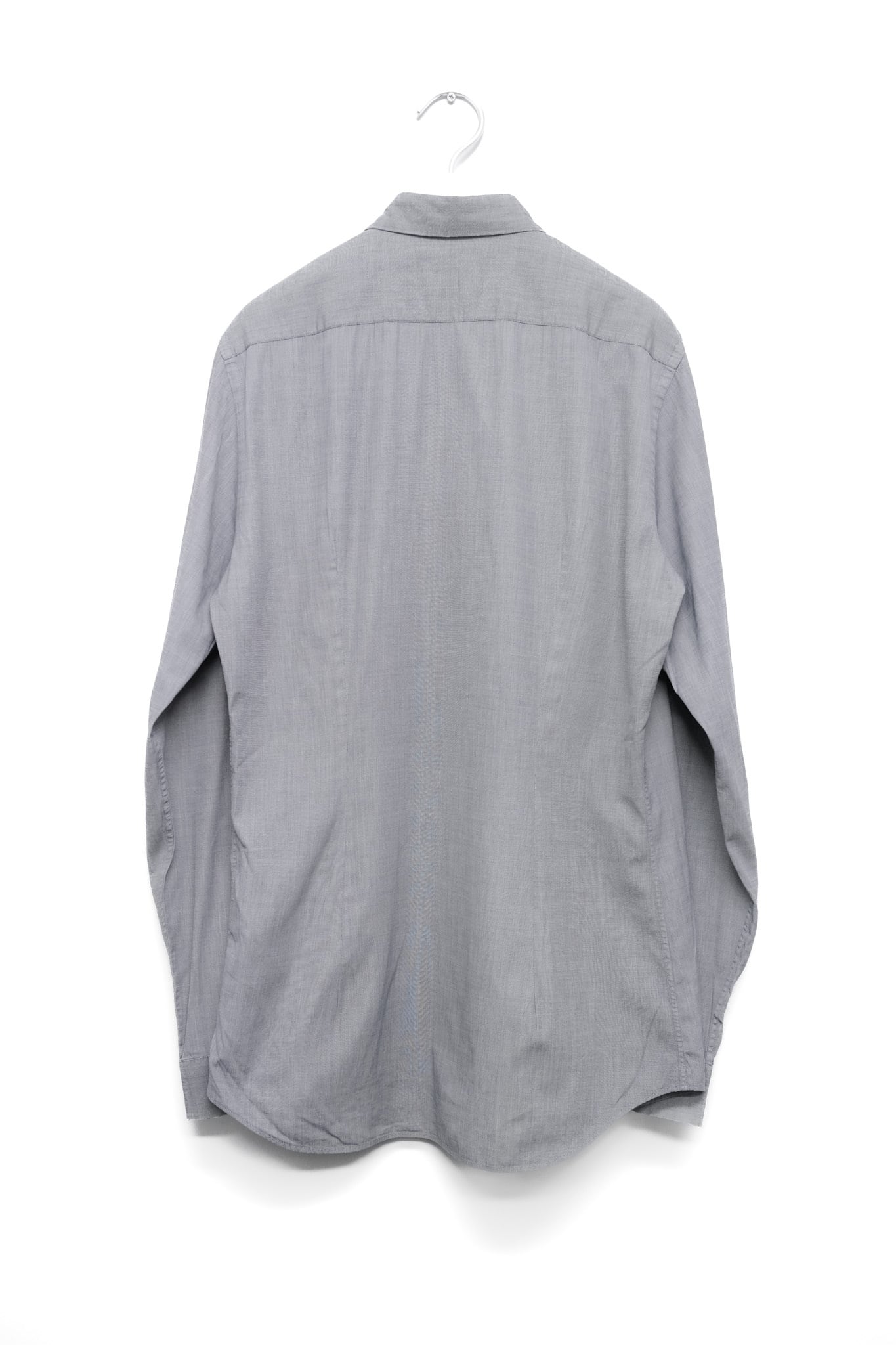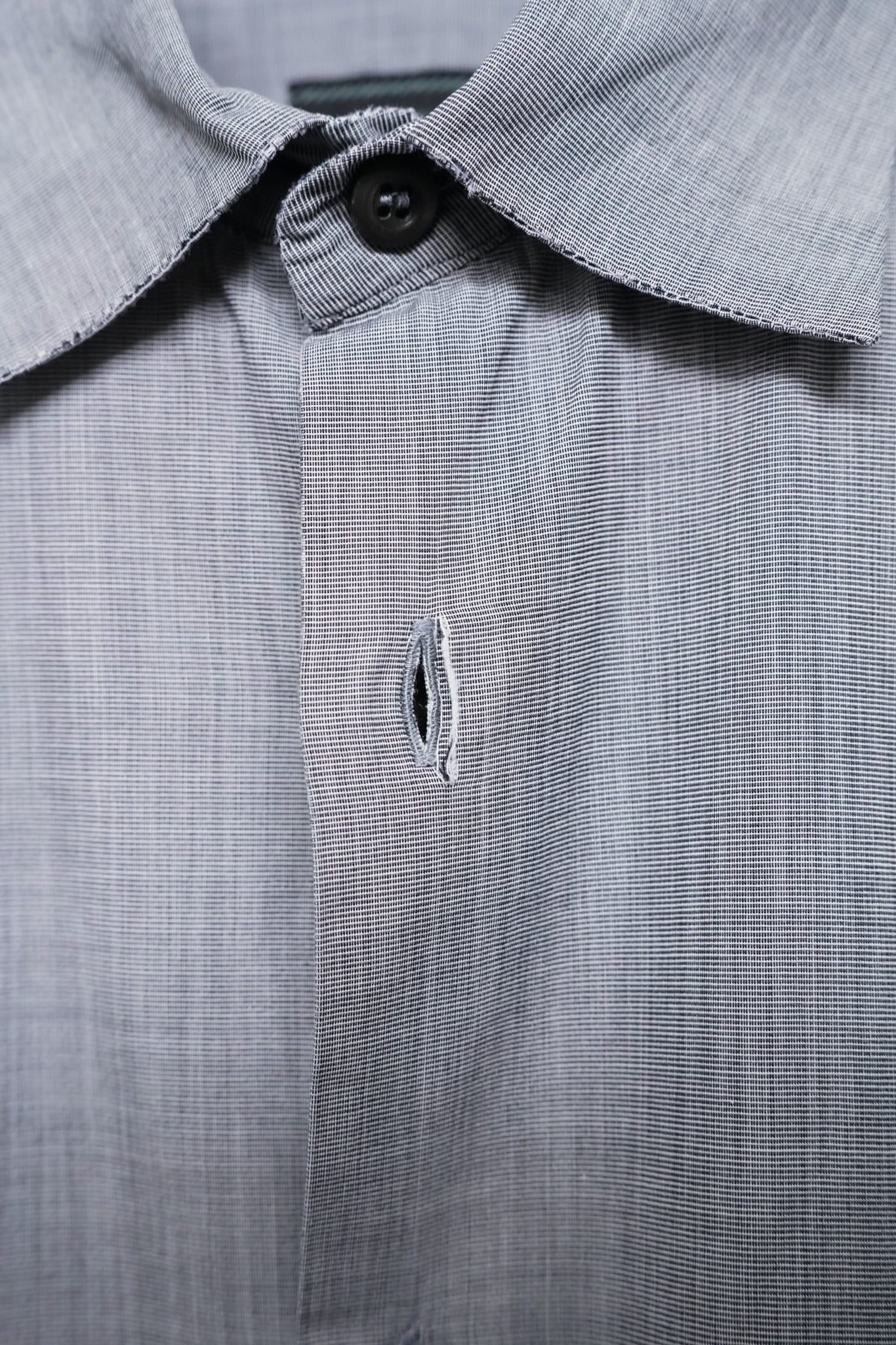 本作はコットンを用いたドレスシャツ。端正なレギュラーカラー、前立てのステッチワーク、滑らかな運針がまず目を引きます。