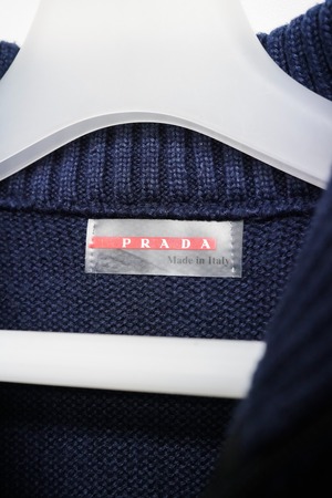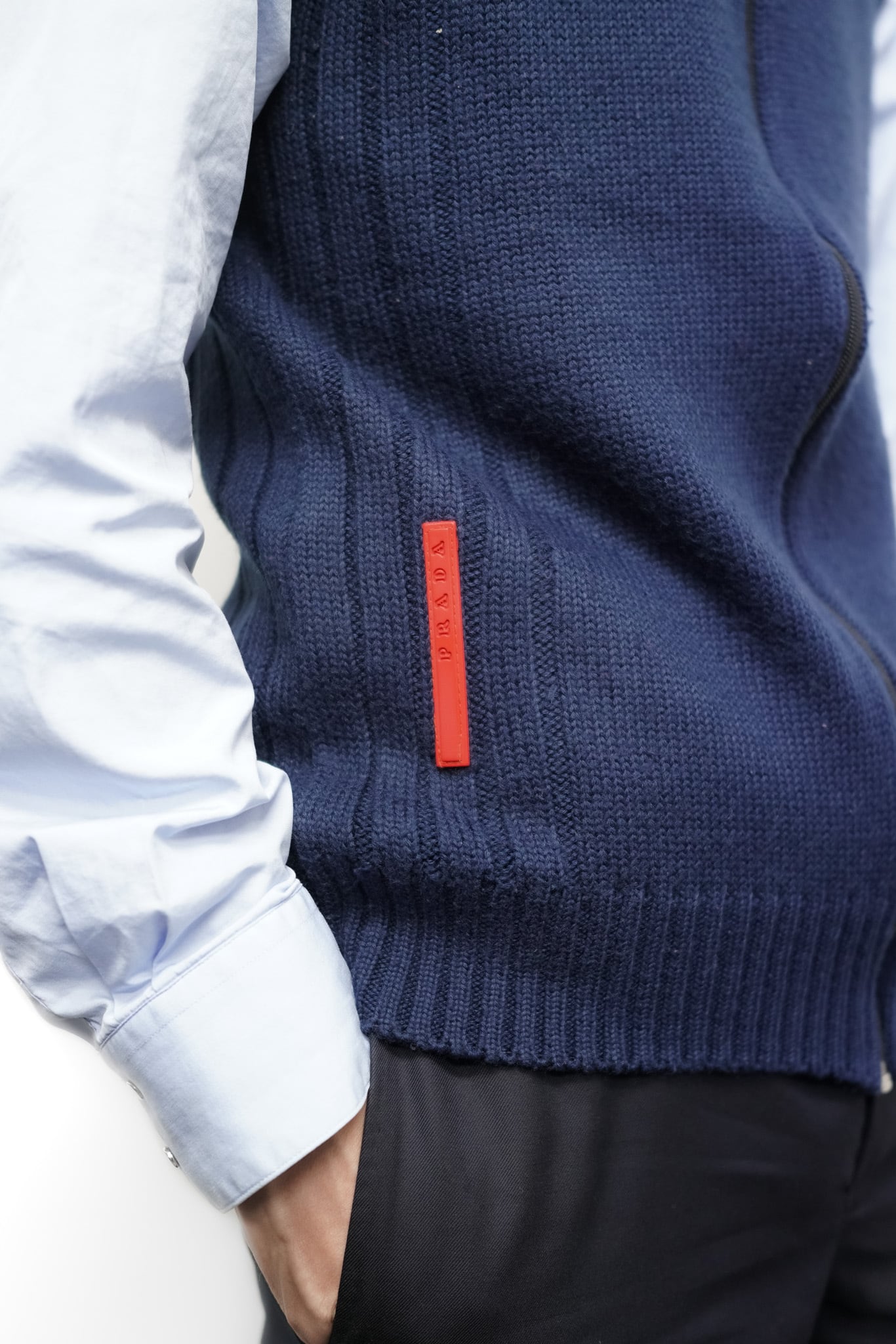ニットでありながらスポーティに振れすぎないのは、プラダらしいミニマル設計ゆえ。