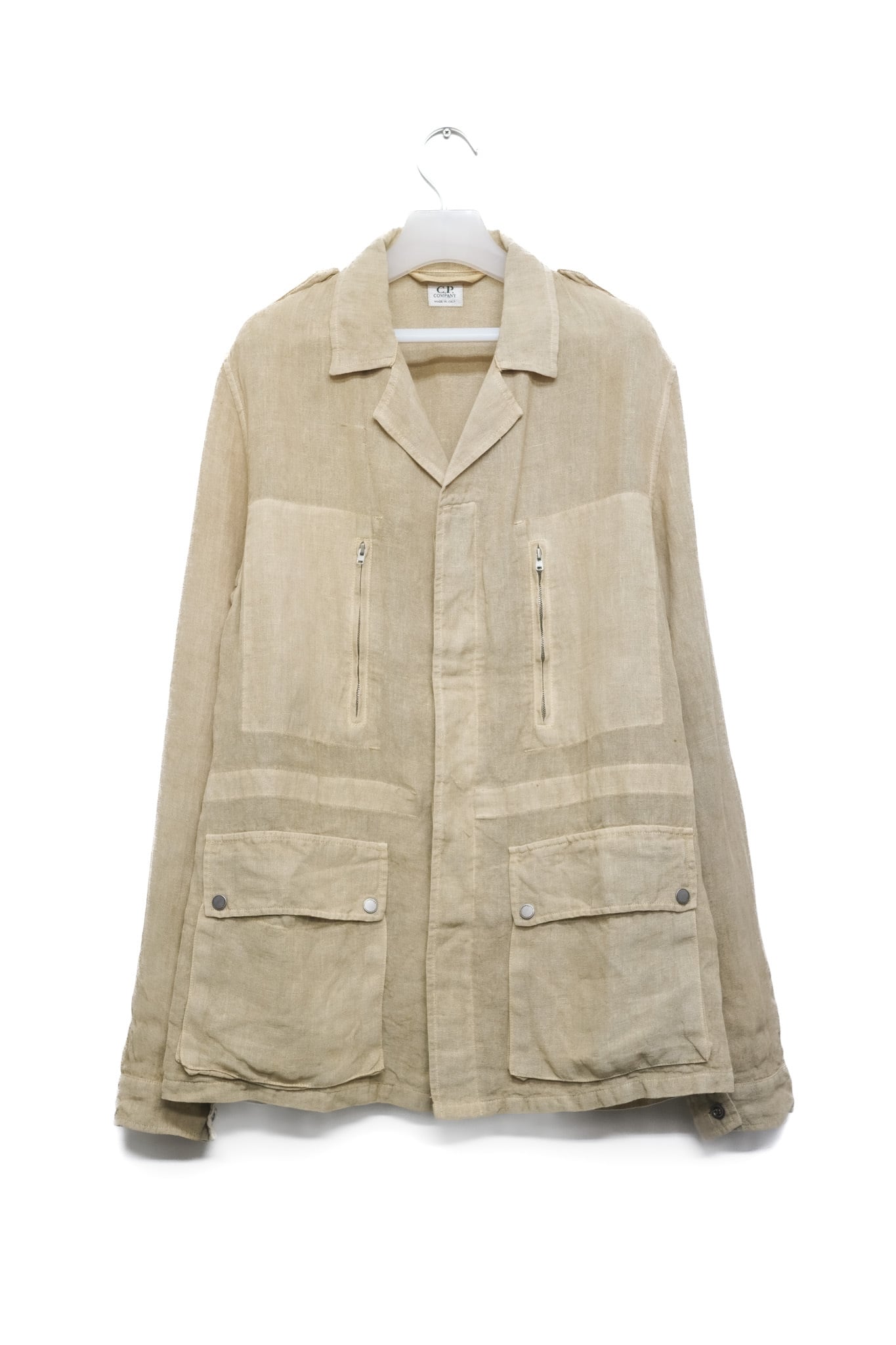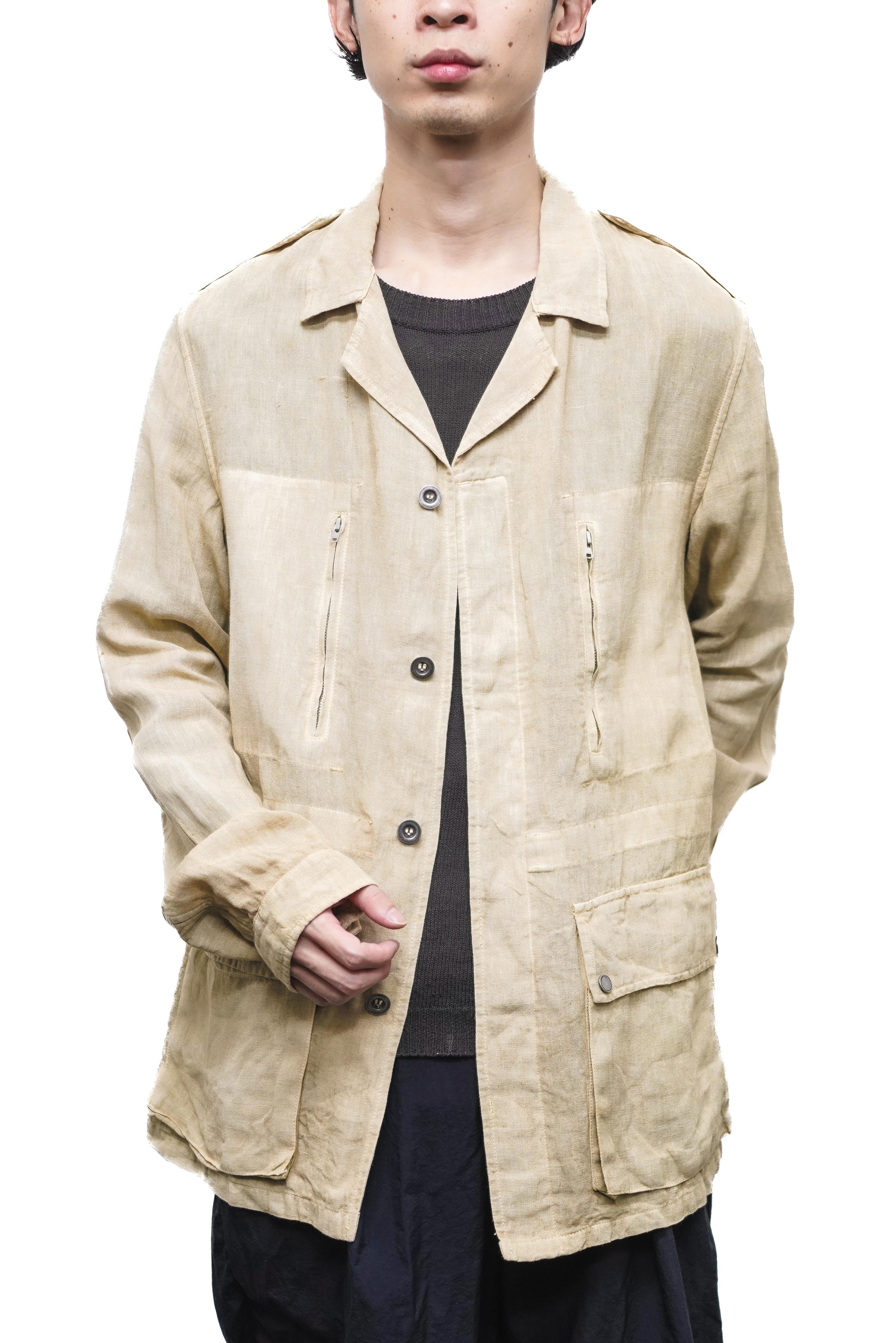 本品はブランドの研究姿勢が凝縮されたリネン素材のフィールド系デザインの一着。