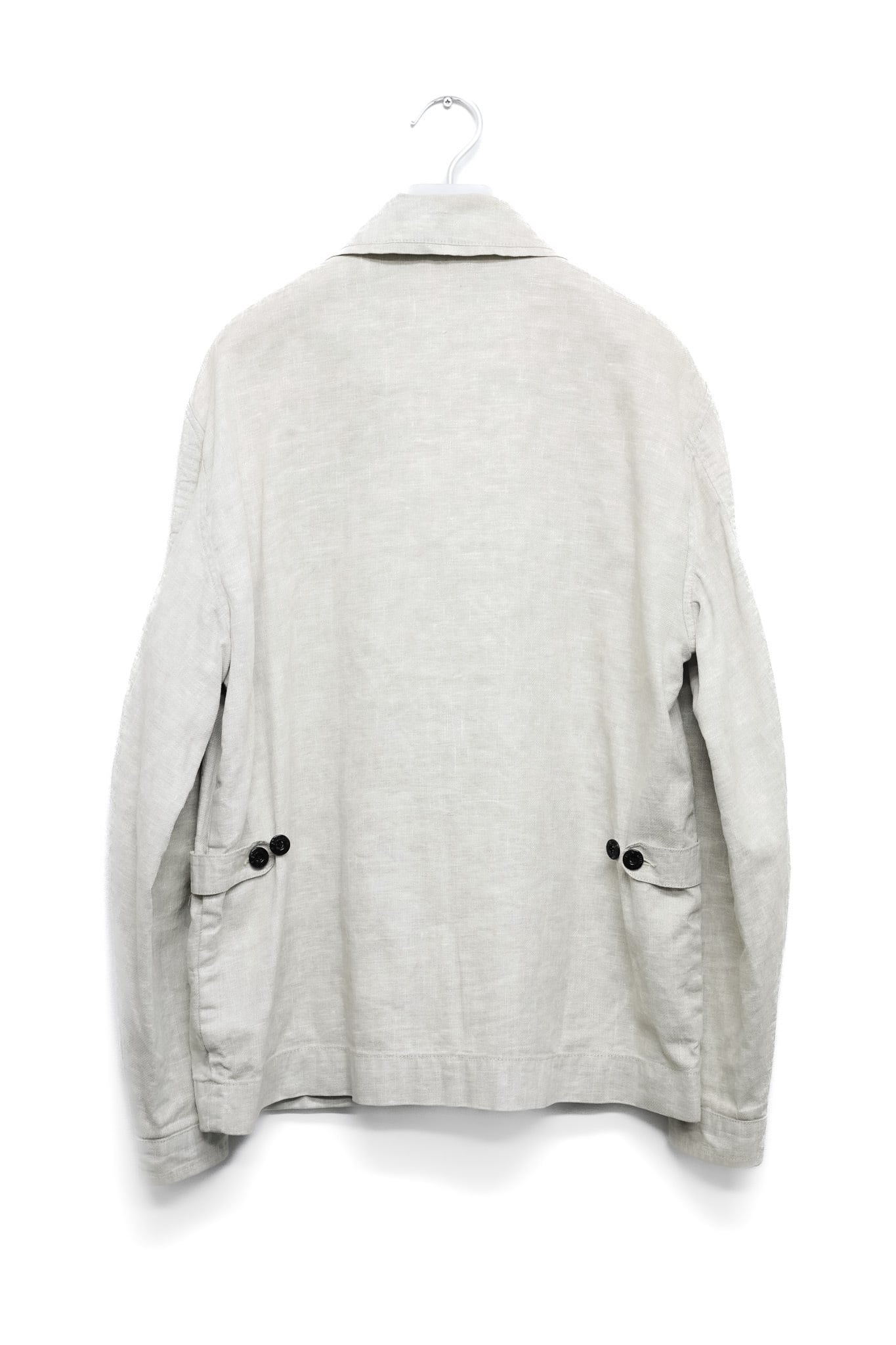 ミリタリーの要素を必要最小限に要約し、軽快なリネンの魅力を前面に押し出した設計は、ハーヴェイが得意とする"機能を洗練へと翻訳する"手腕を雄弁に物語ります。