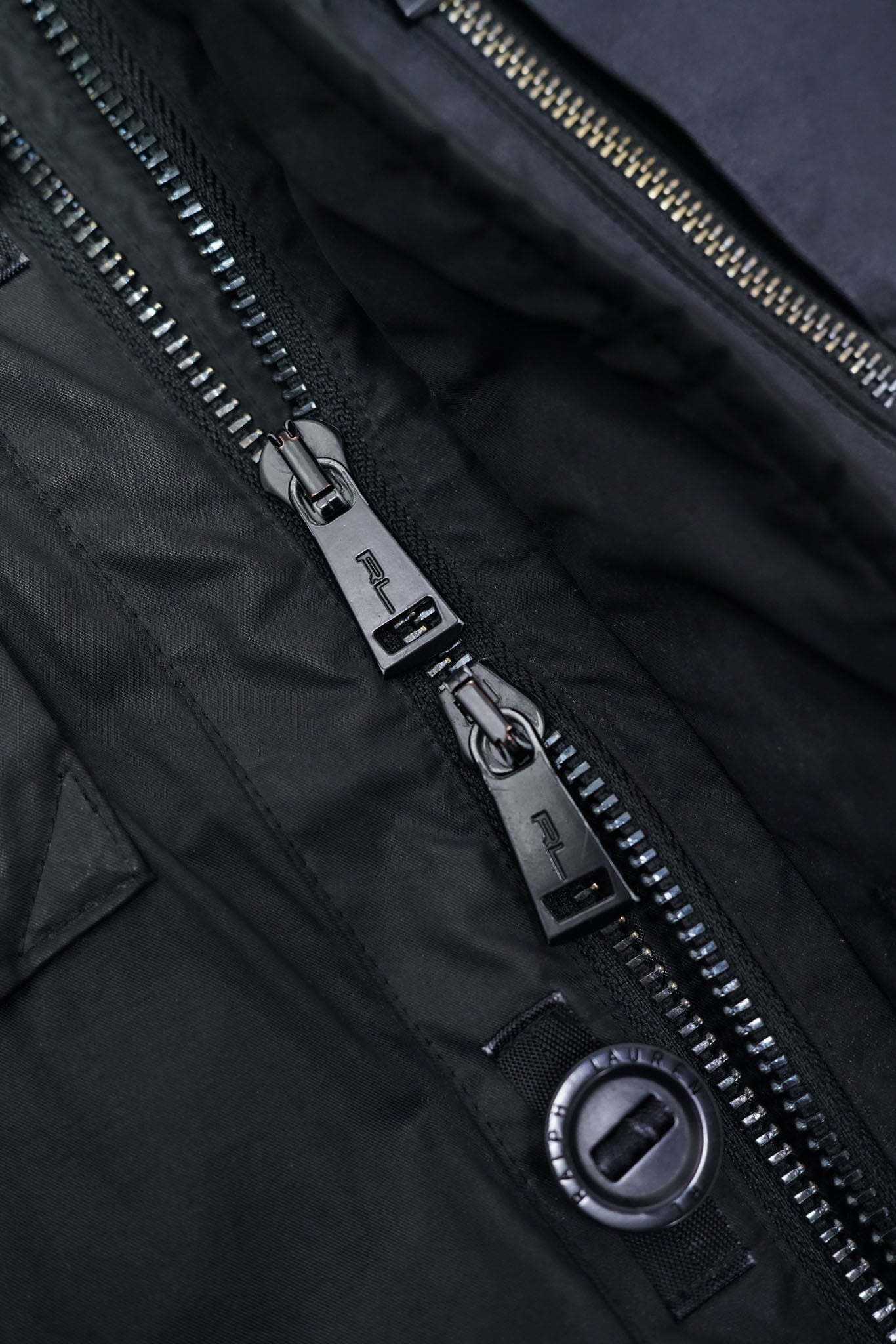 ブランドの"RL"刻印入りの引手は金属光沢を抑えた落ち着いた仕上げで、全体の色調とミリタリーディテールの調和を崩さず、機能性とデザイン性を両立させています。