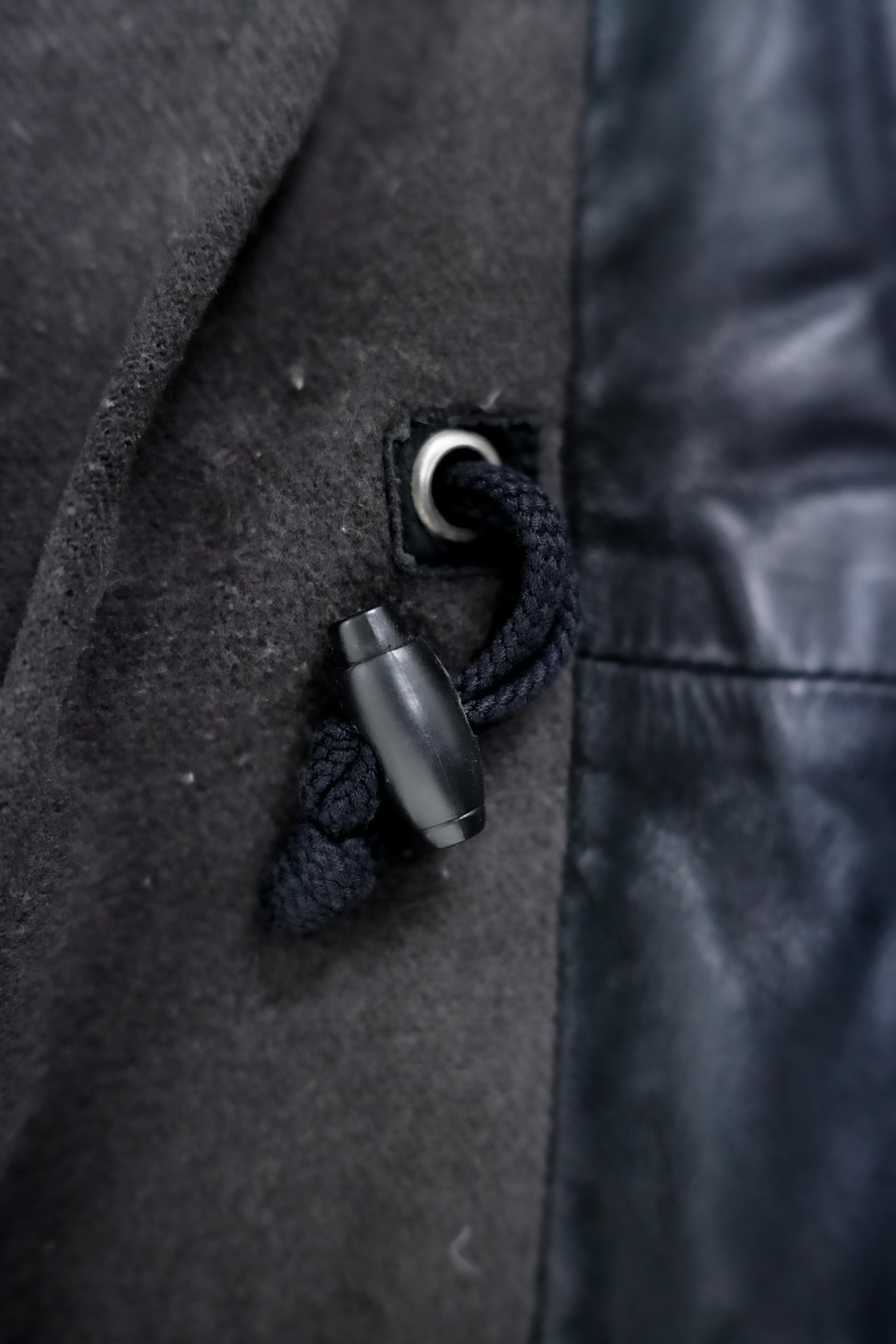 前立てを比翼仕立てにすることで、金具を隠し、洗練されたミニマルな印象に。