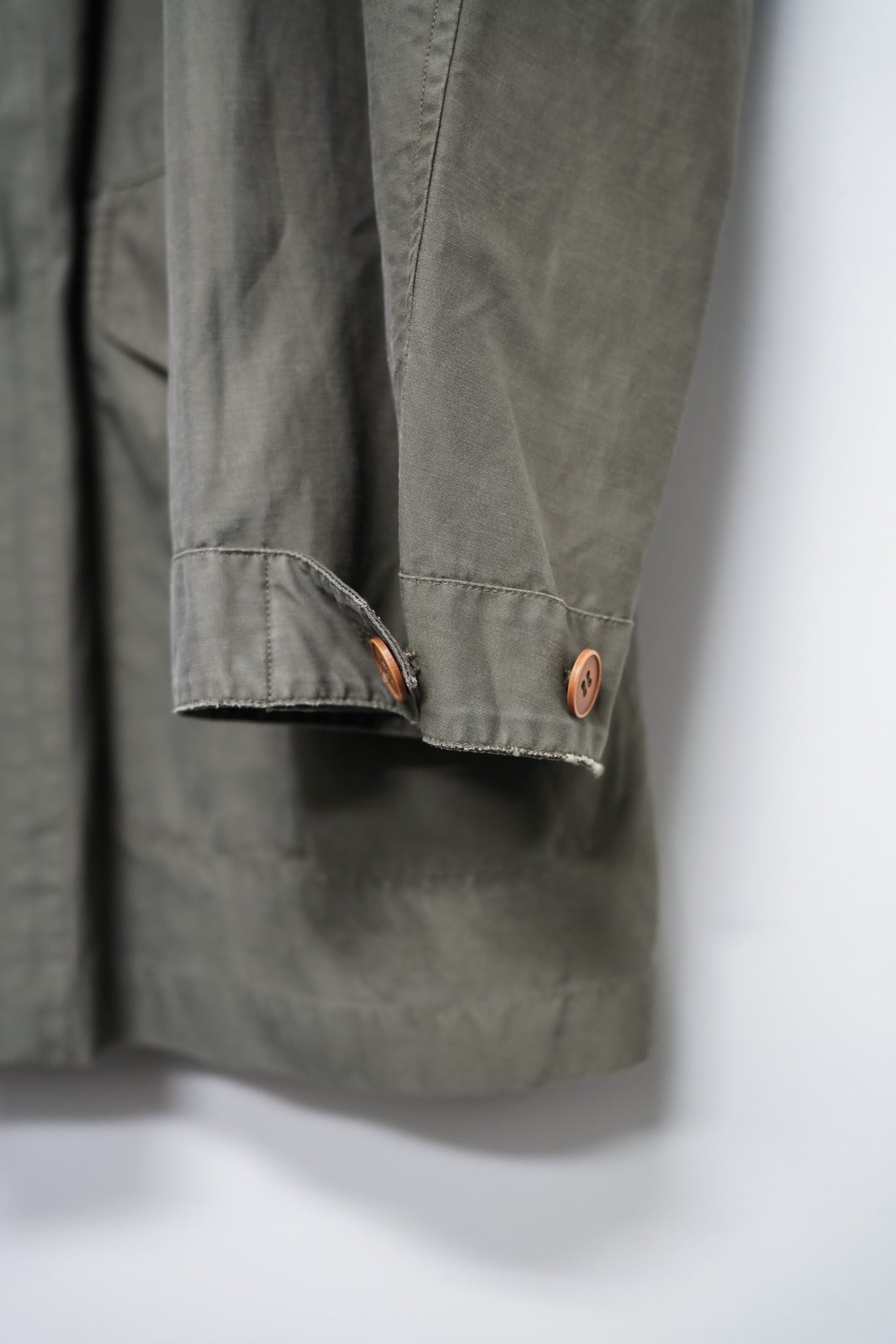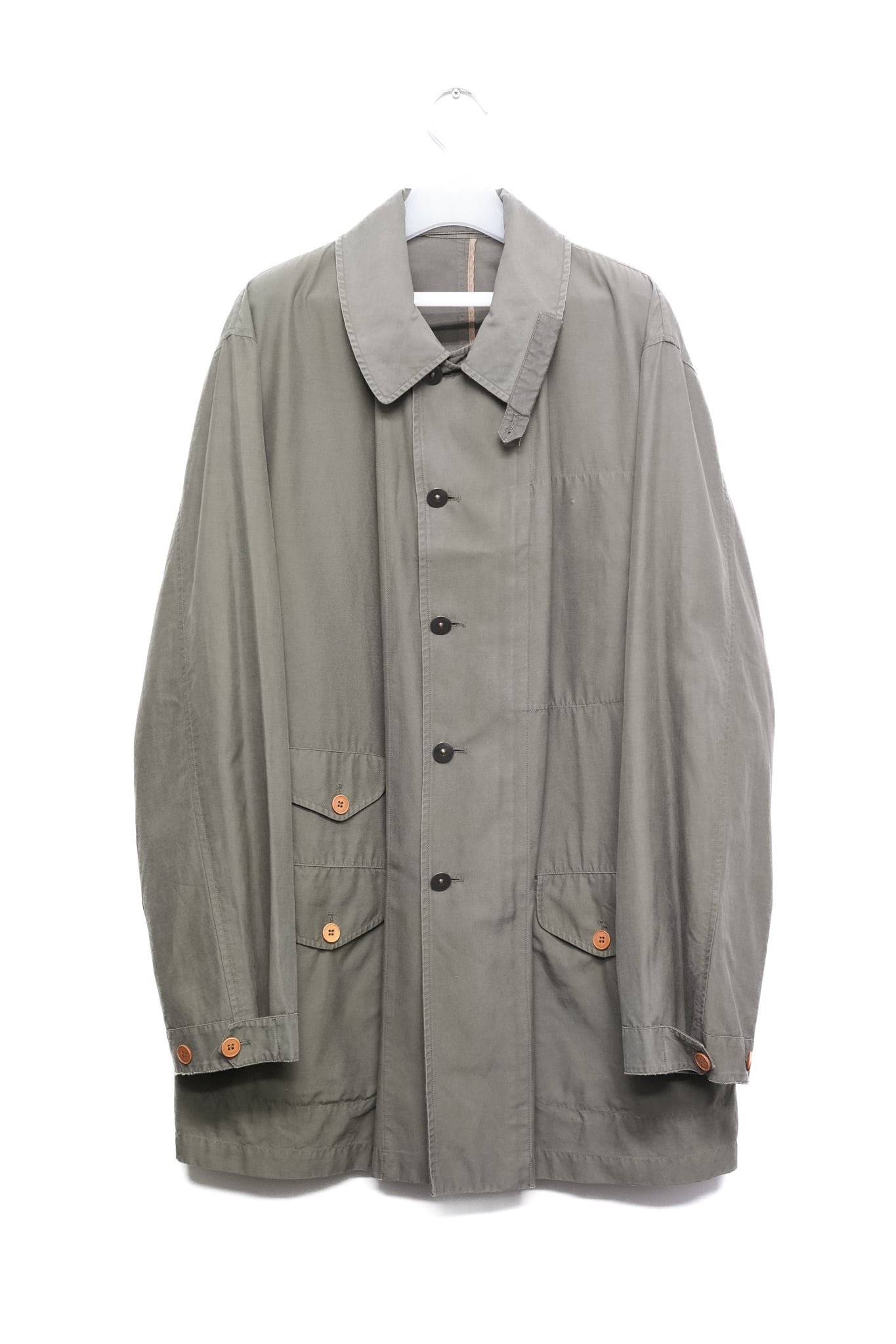 ブランド独自の素材"RY-COTTON(56%レーヨン × 44%コットン)"を用いた一着で、レーヨンの滑らかさとコットンの強さを兼ね備えた、軽量かつドレープ感のある生地が特徴です。