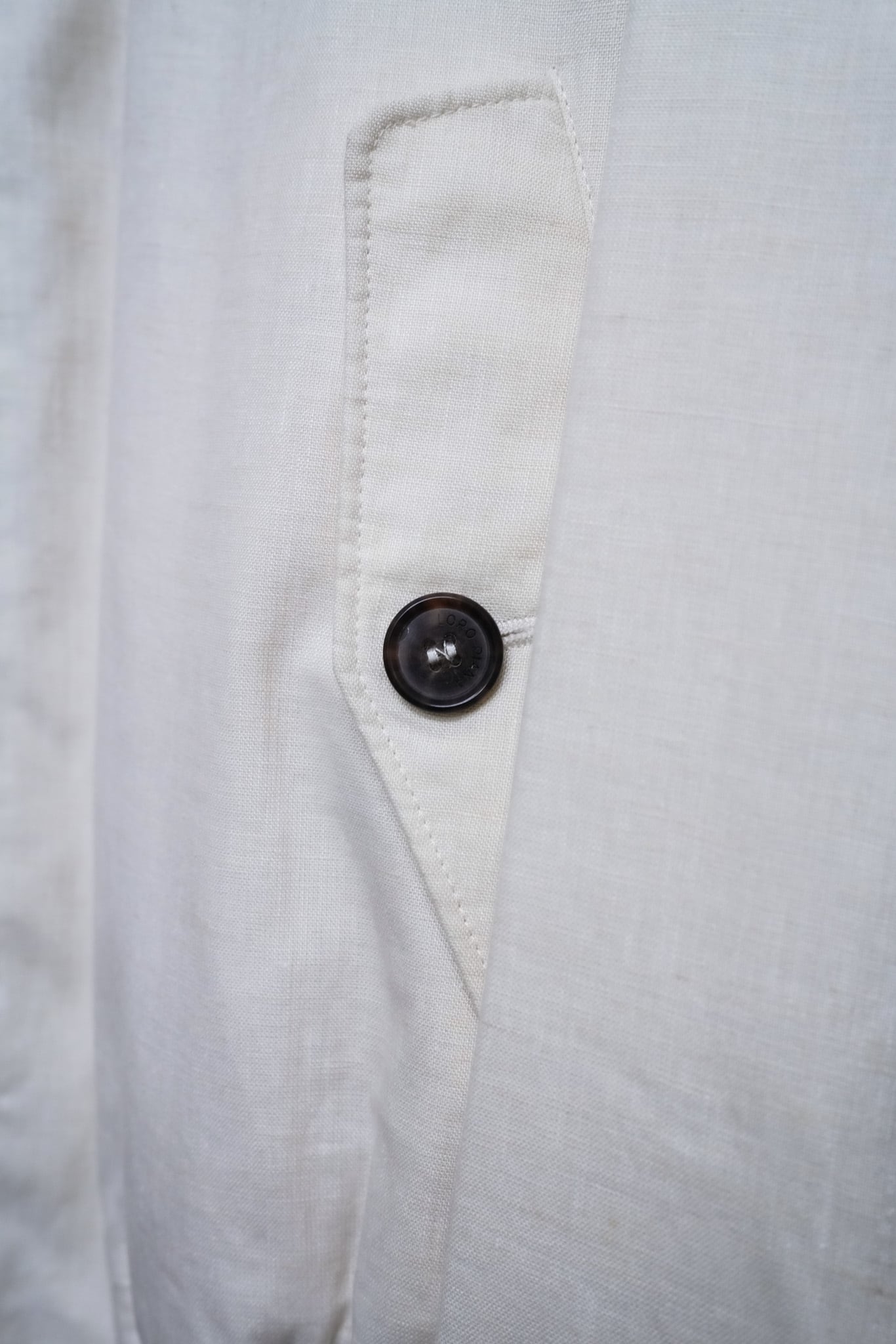 リネンの清涼感と、機能素材としての耐久性が見事に調和した、まさに"実用のためのラグジュアリー"を具現化した一着です。