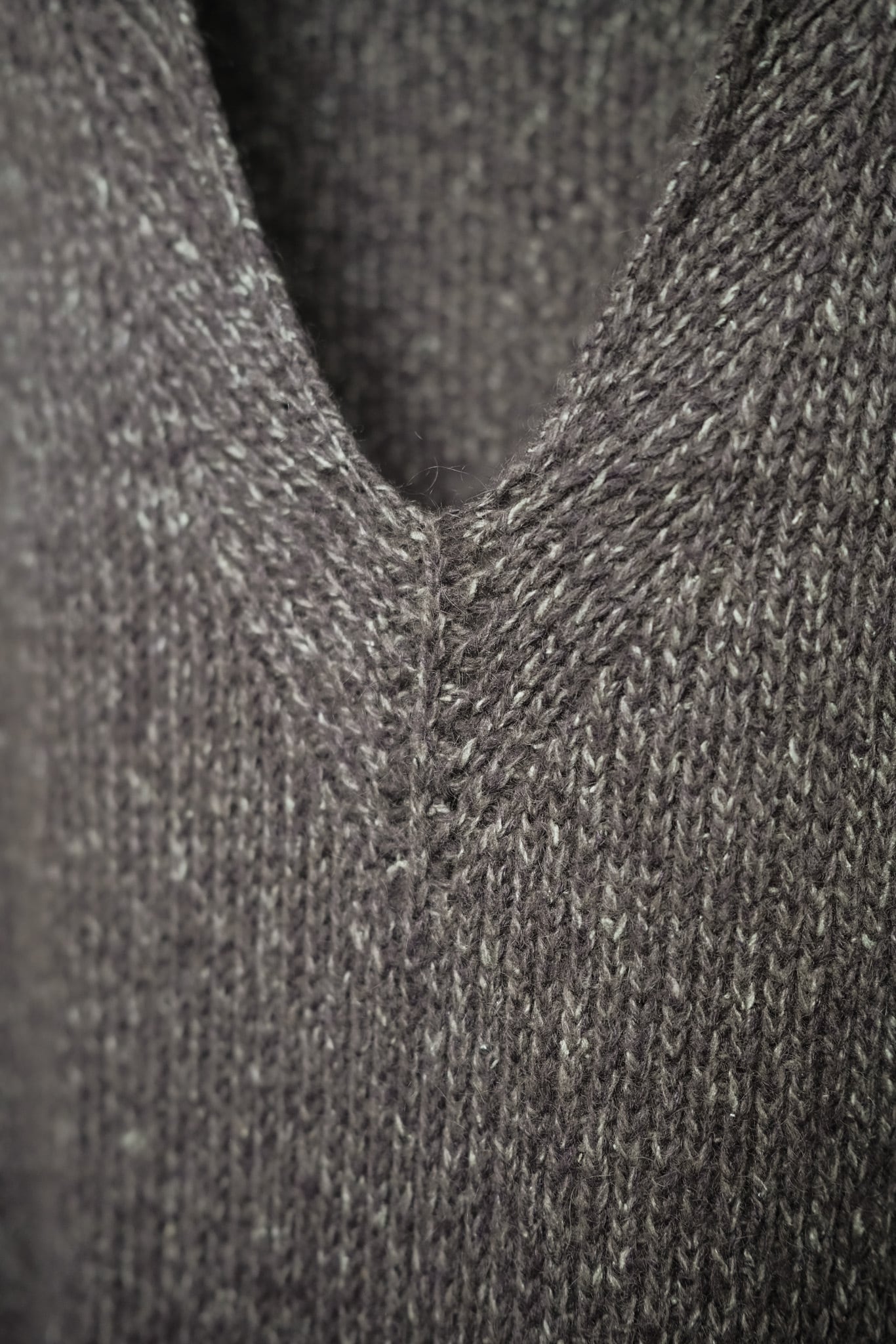 大胆に開いたVネックラインは、ジャケットやシャツのインナーとしてレイヤードした際、襟元から自然に流れる縦のラインを強調し、着る人の佇まいに軽やかな品格を添えます。