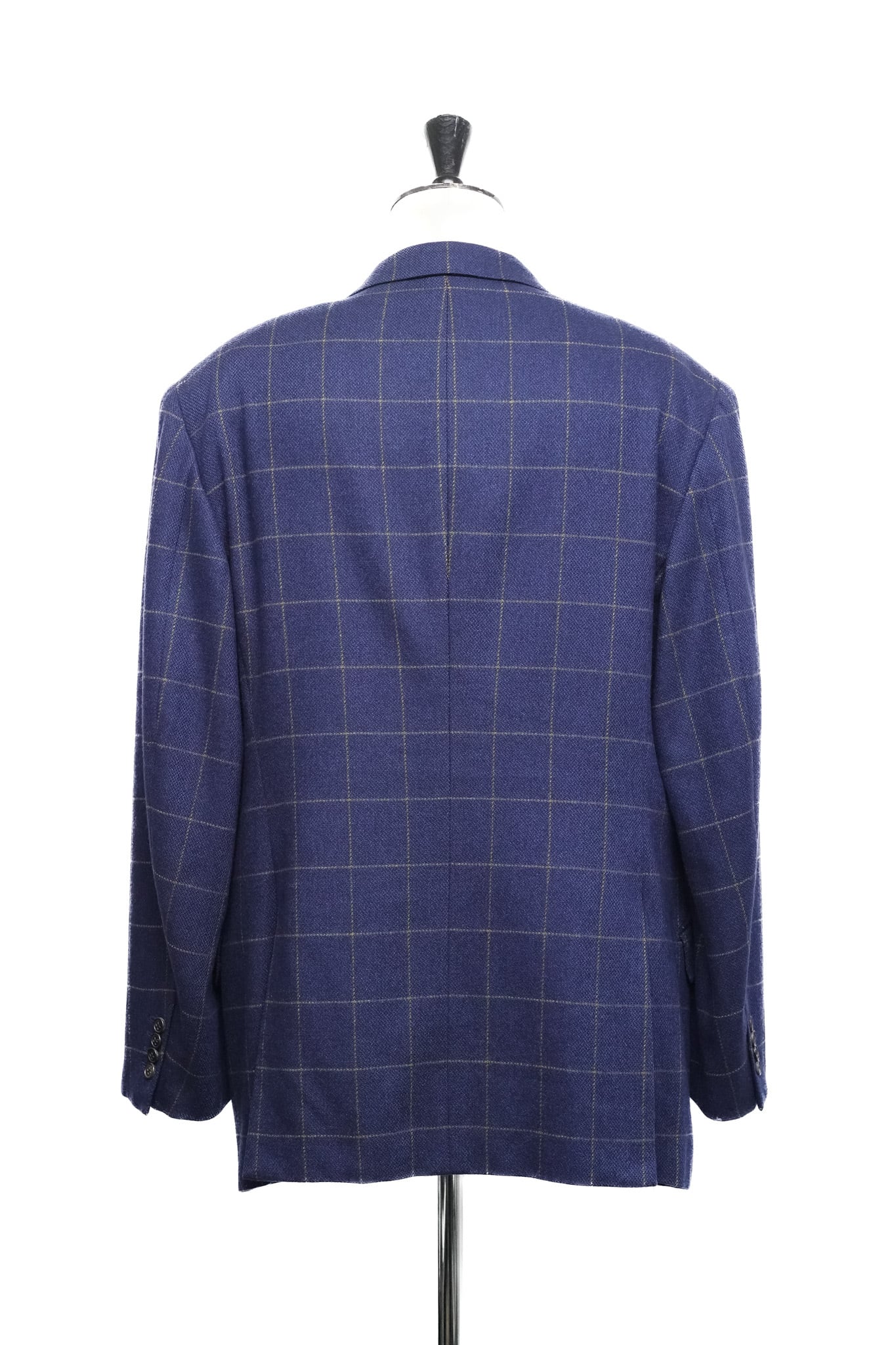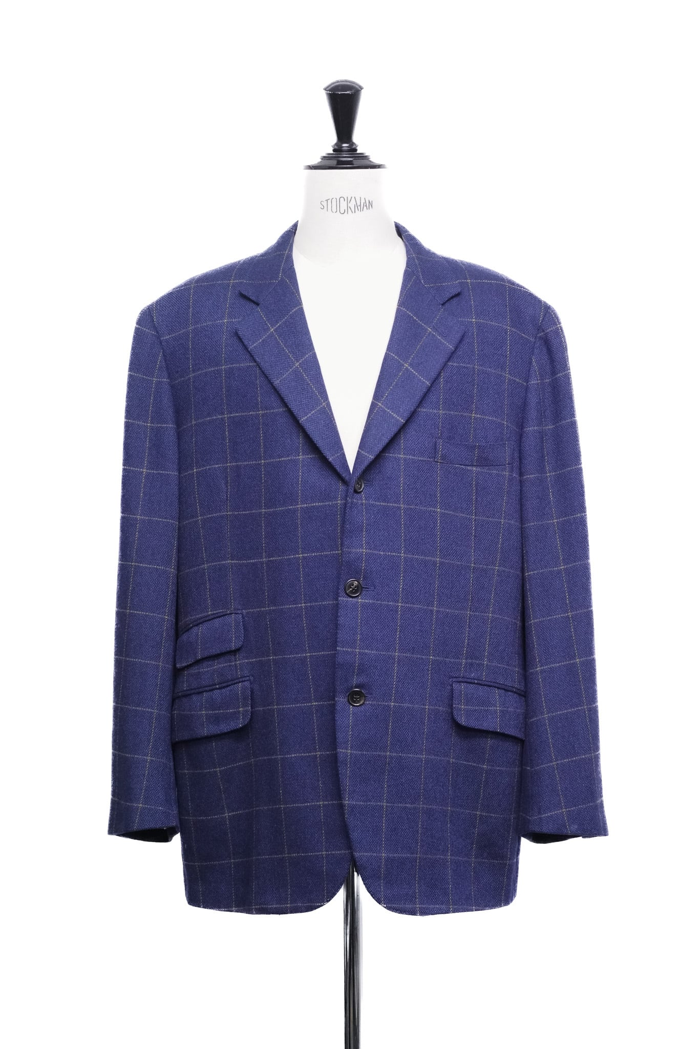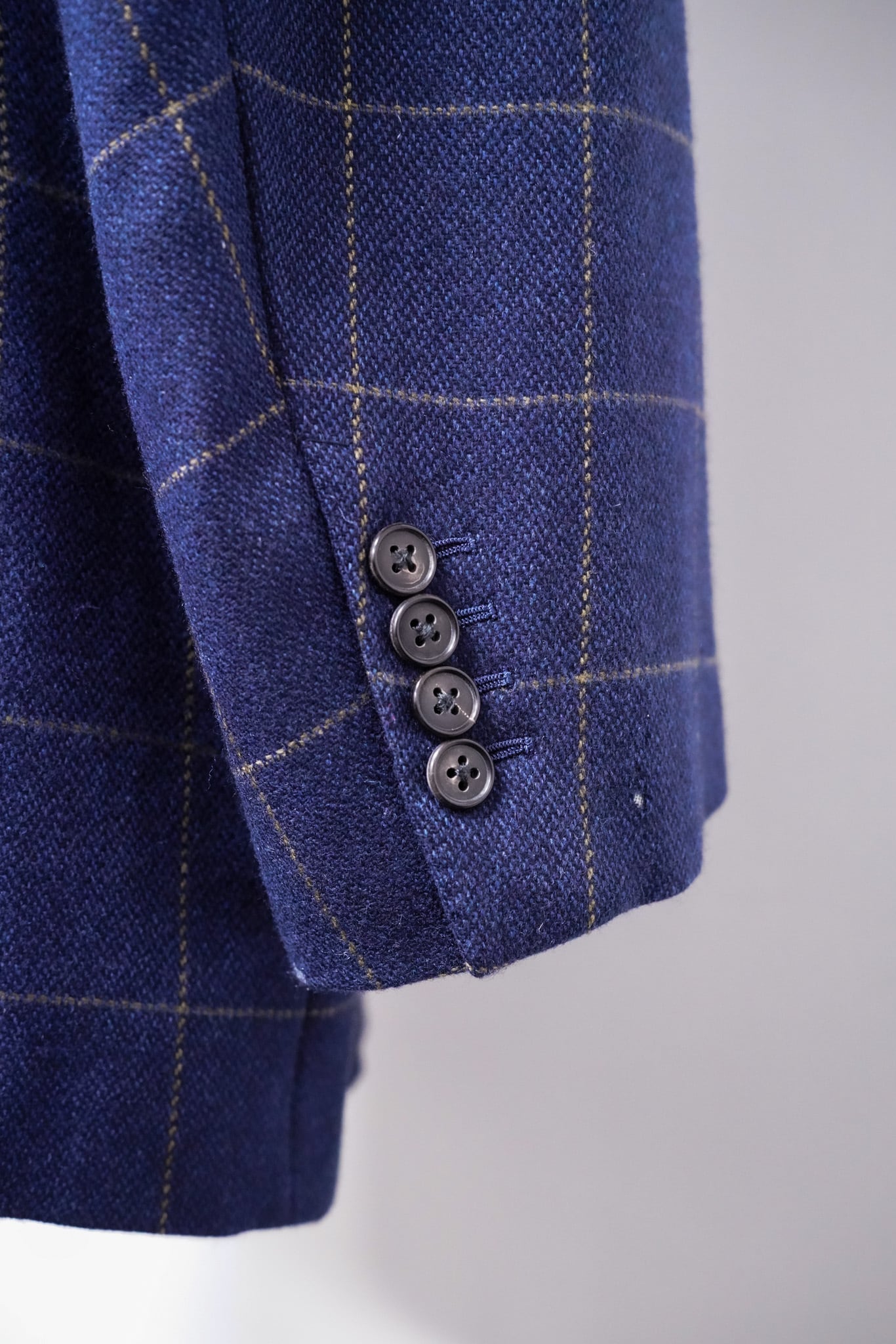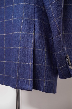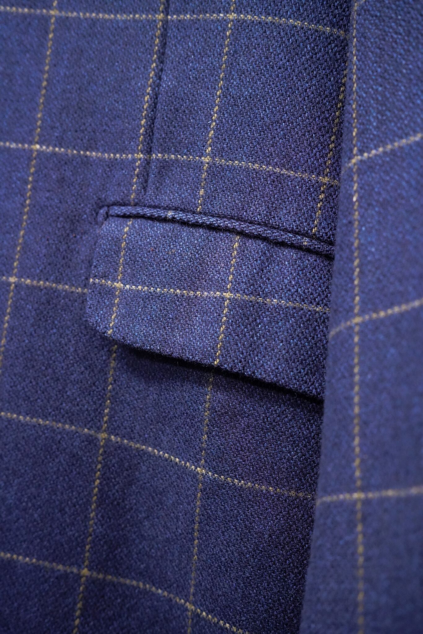 深みのあるロイヤルブルーを基調に、オレンジのウィンドウペーンを乗せたチェック柄は、クラシックでありながらどこか軽やかさを感じさせる絶妙なバランス。