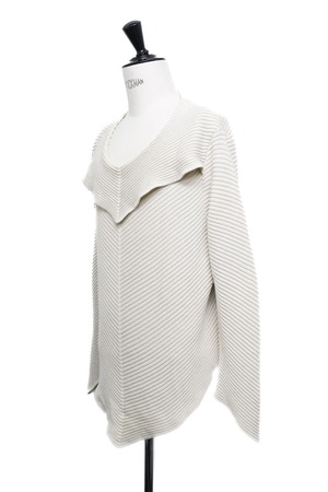 控えめでありながら揺るぎない存在感を持ち、着る人の動きや空気感を纏いながら静かに語りかけてくるような、唯一無二のニットウェアでございます。