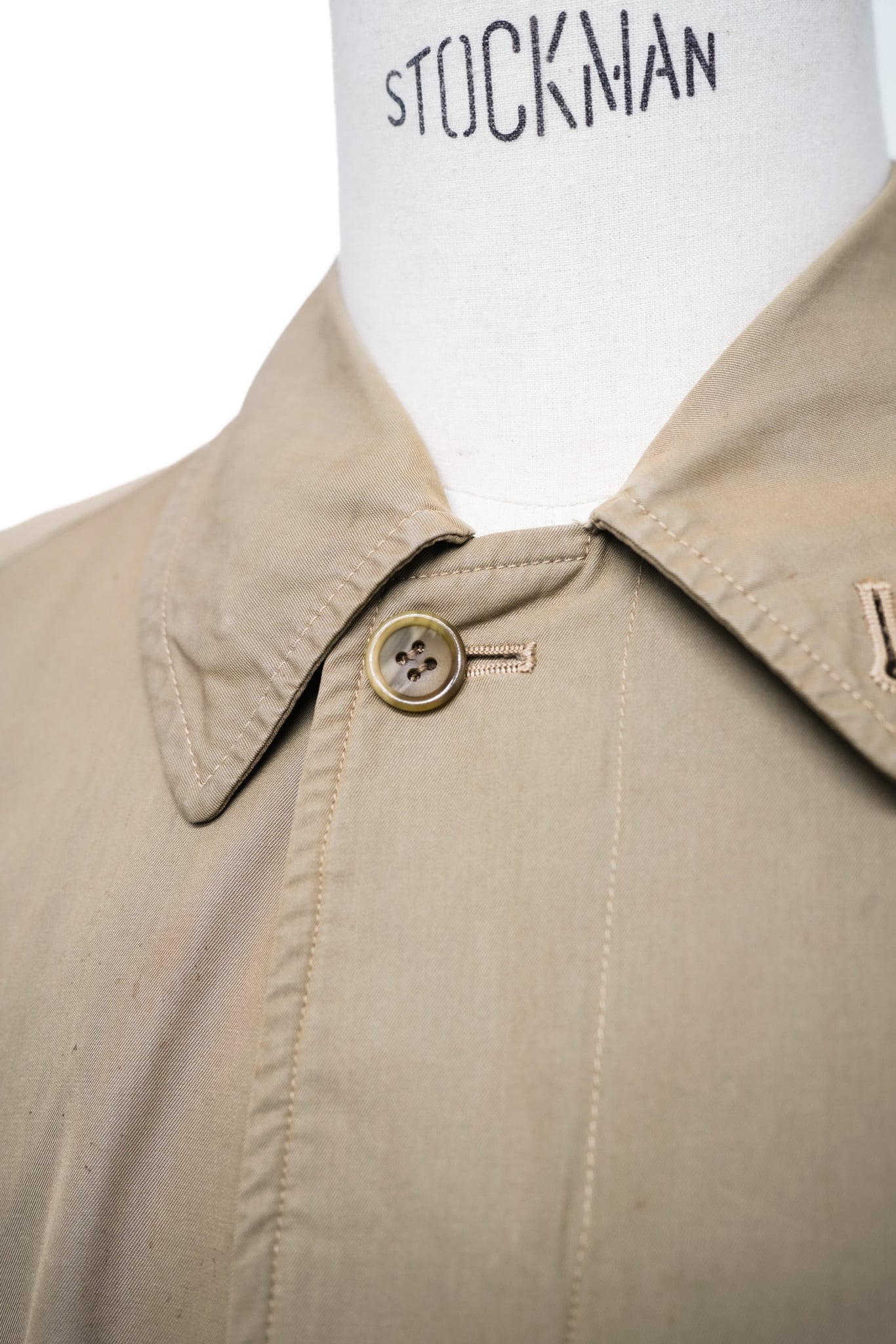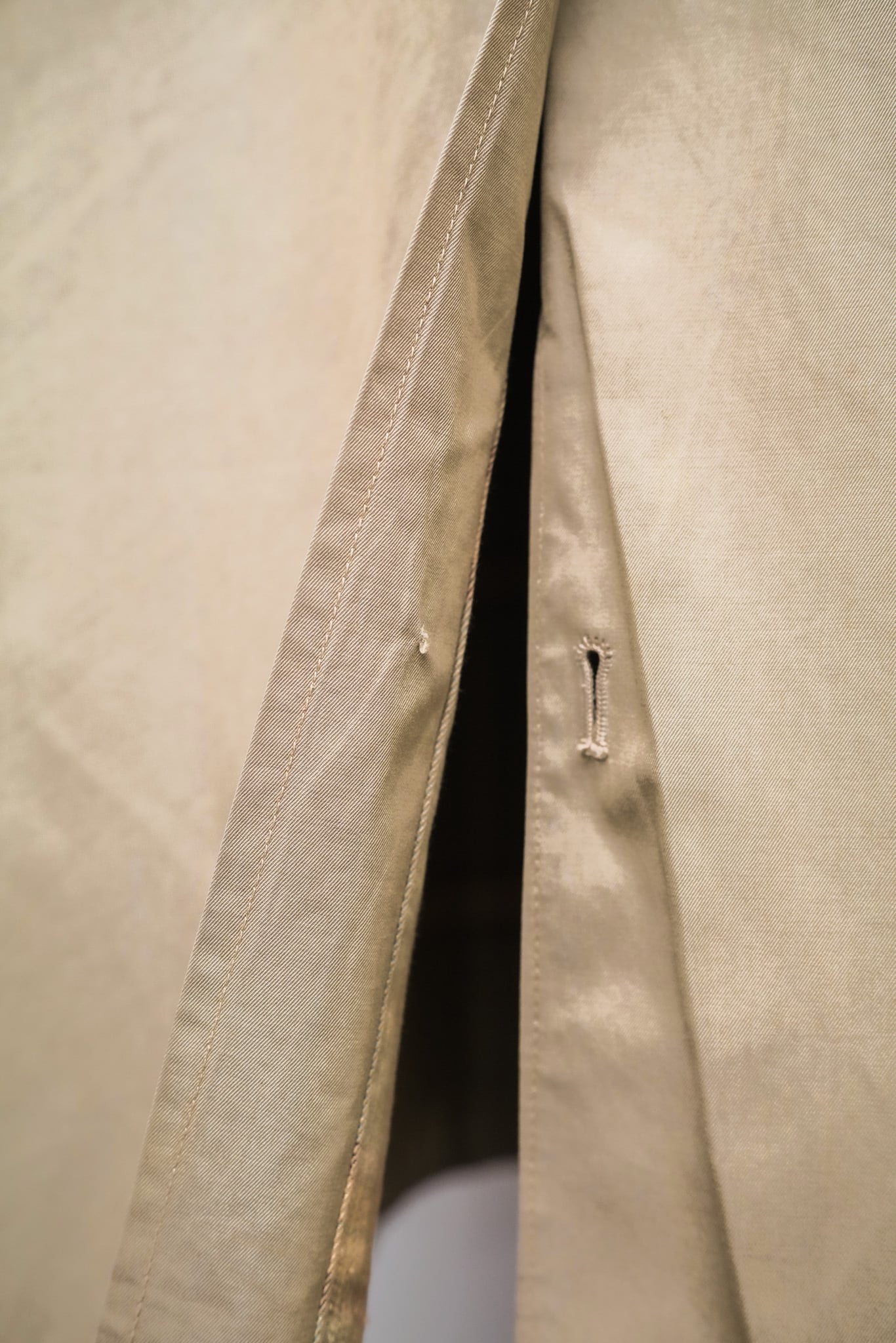 ひと目見た瞬間に感じられる独自の深みは、この時代のバーバリーだけがつくり得たものであり、とりわけ玉虫生地が生み出す色調の揺らぎは、現代の織物では再現することが非常に難しい趣を宿しています。