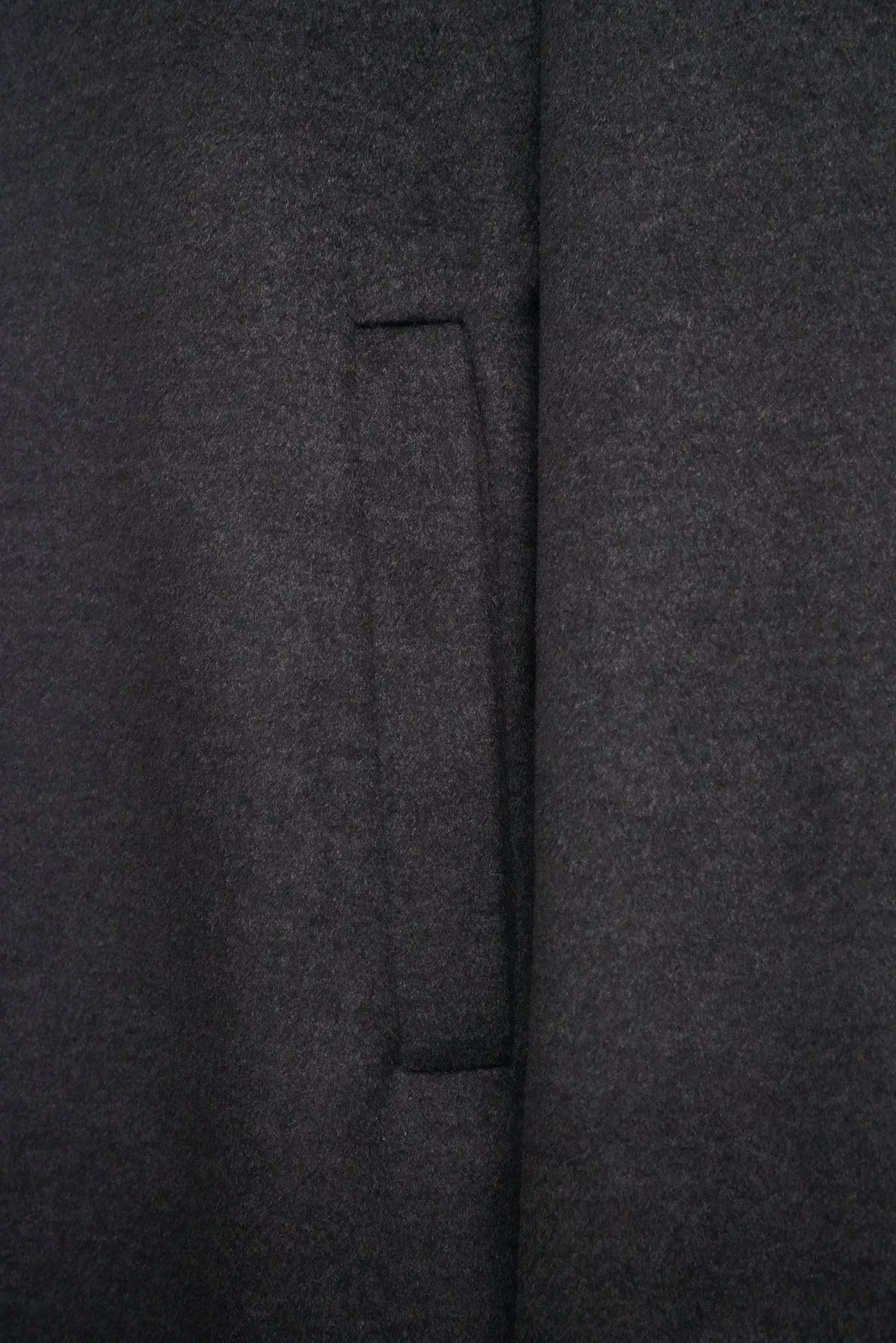 ポケットはスラント気味に配置され、手の出し入れが自然でありながら視覚的にも全体の縦の流れを邪魔しません。