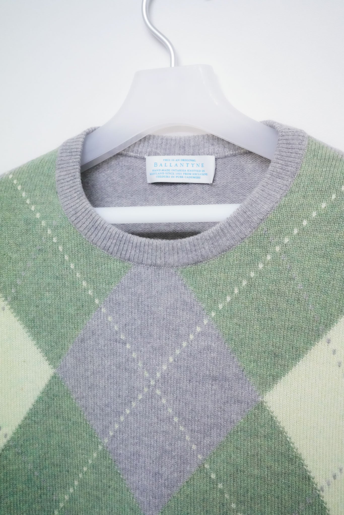本品は、バランタインが誇るクラフツマンシップを最も象徴的に示す"アーガイルパターン"を用いた、2000年代頃のクルーネックニットでございます。