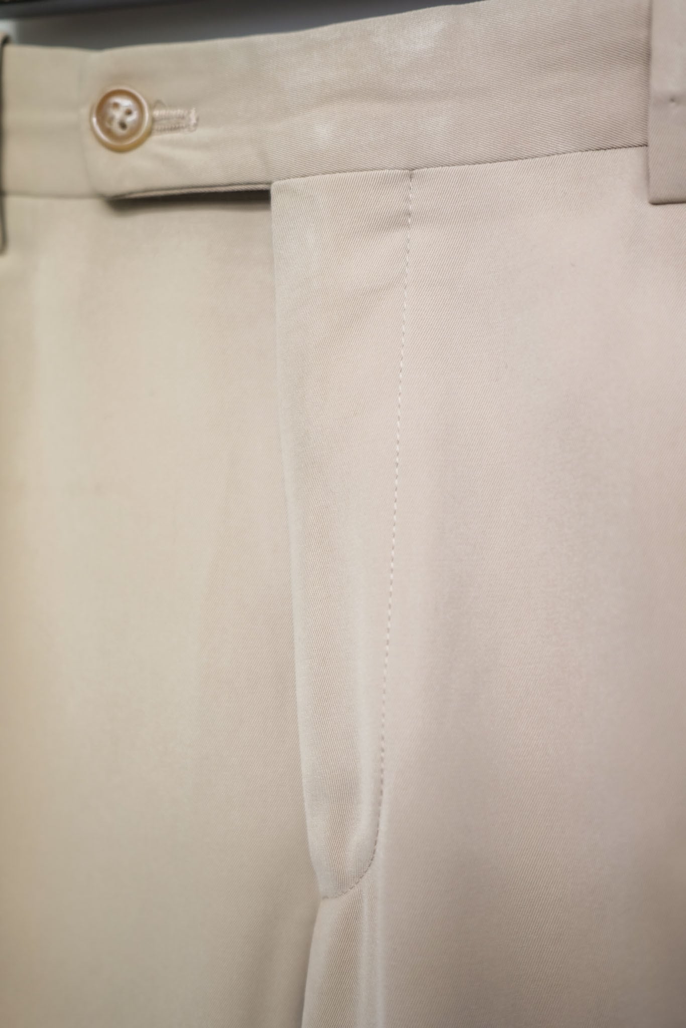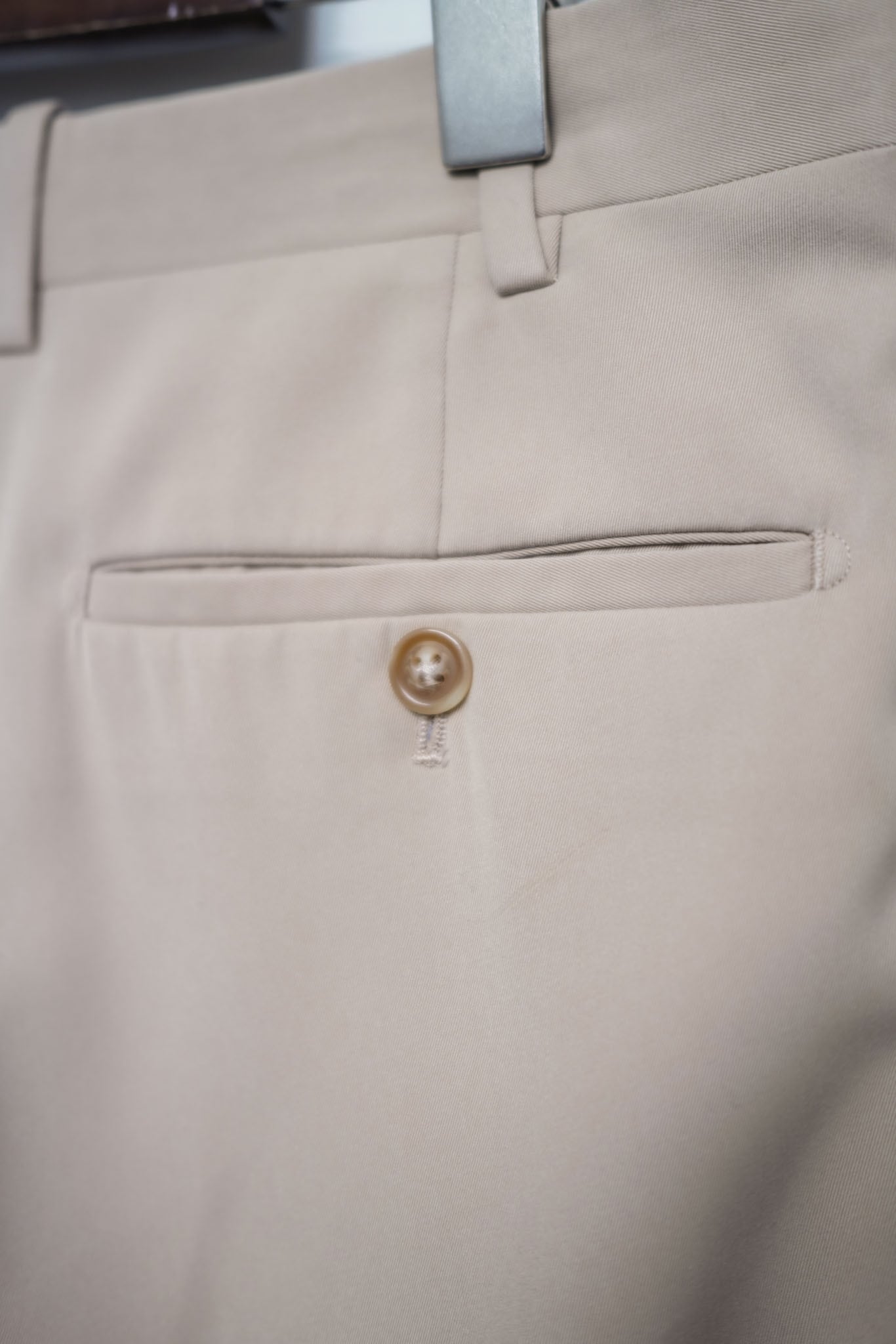 90年代フランス製らしい端正な仕立てに、軽快なポリエステル・ギャバジンを組み合わせた一本でございます。