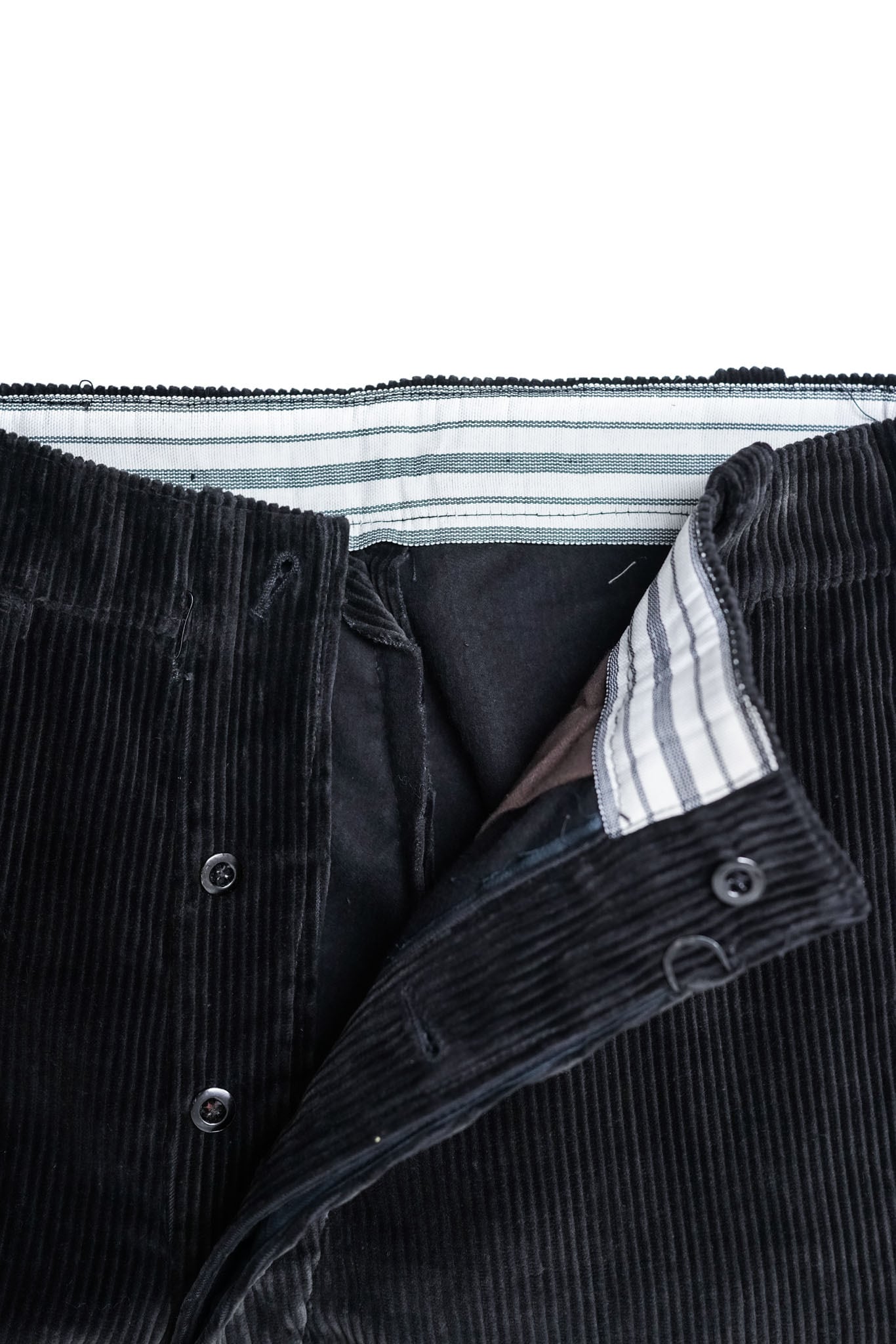 ブラックコーデュロイのワイドトラウザーは市場でも流通量が極めて少なく、状態良好の個体は特に希少です。