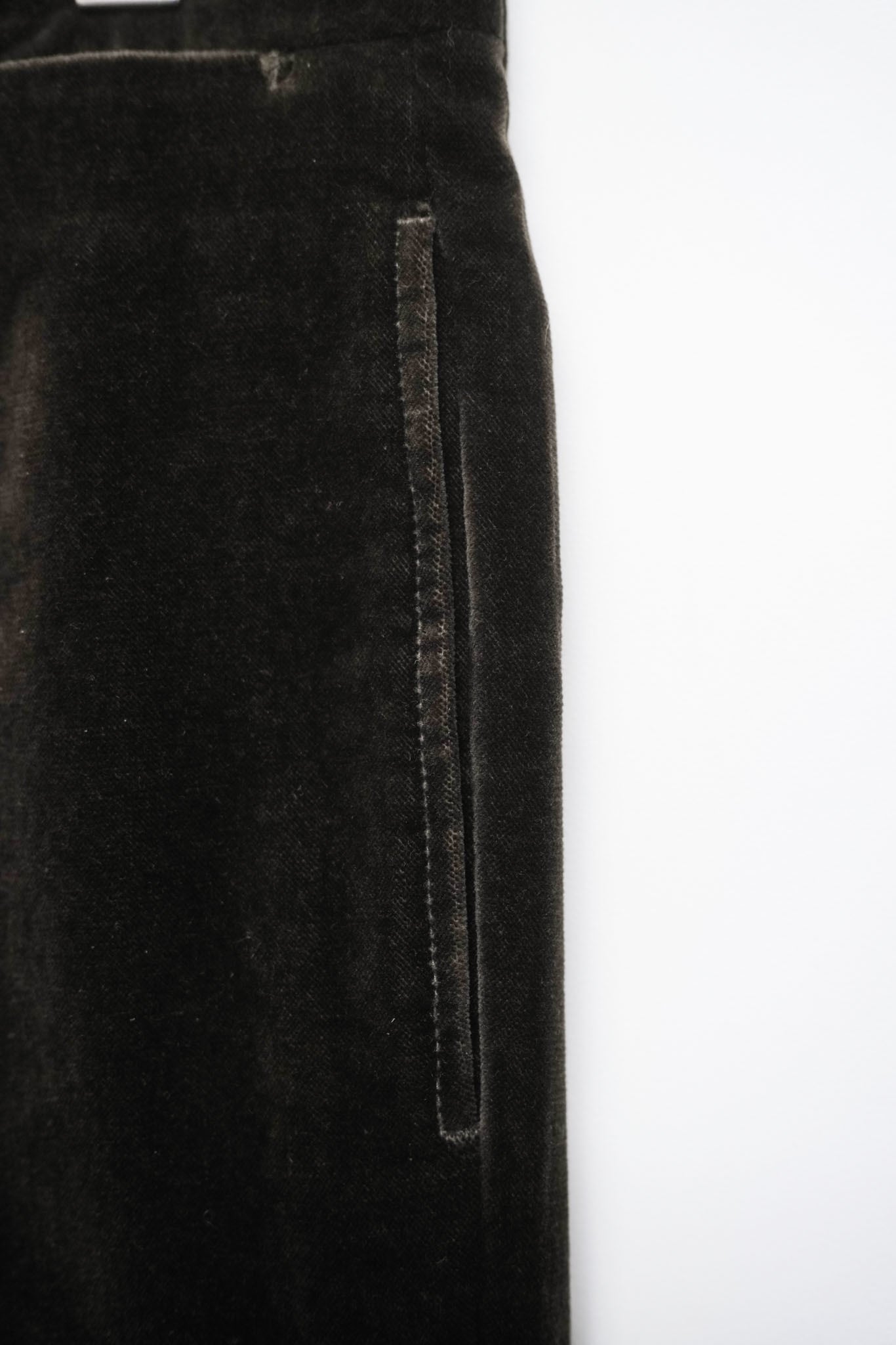 ブランドロゴが主張しない代わりに、素材、縫い、色、静けさが語る。穿き込むほどに身体に馴染み、自分だけの陰影を纏っていくのもベルベット素材ならではの魅力です。