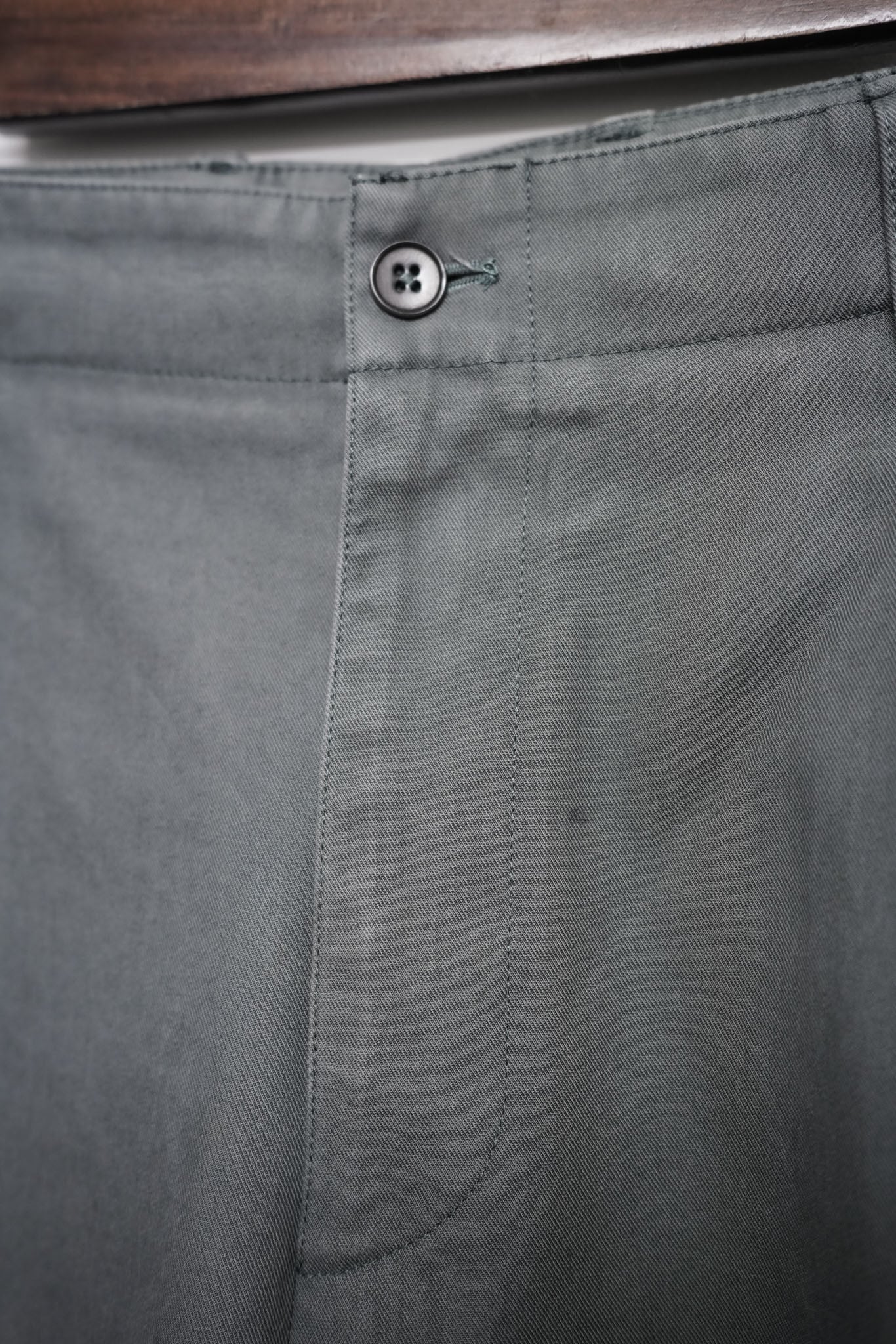 フロントの持ち出し、内側の補強ステッチ、ボタンホールの仕上げ——これらは一見目立ちませんが、穿き心地や耐久性を確実に底上げする要となる部分。