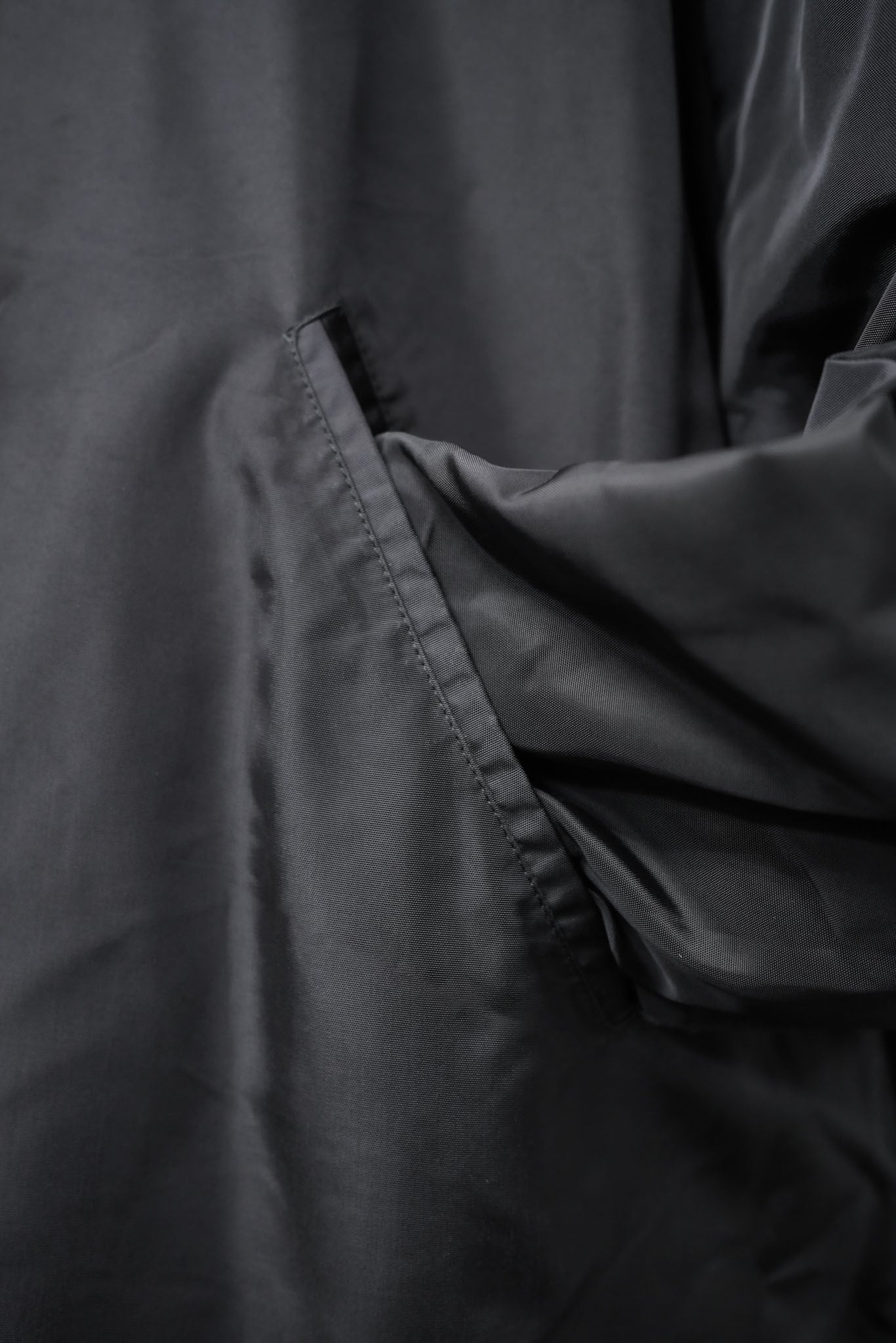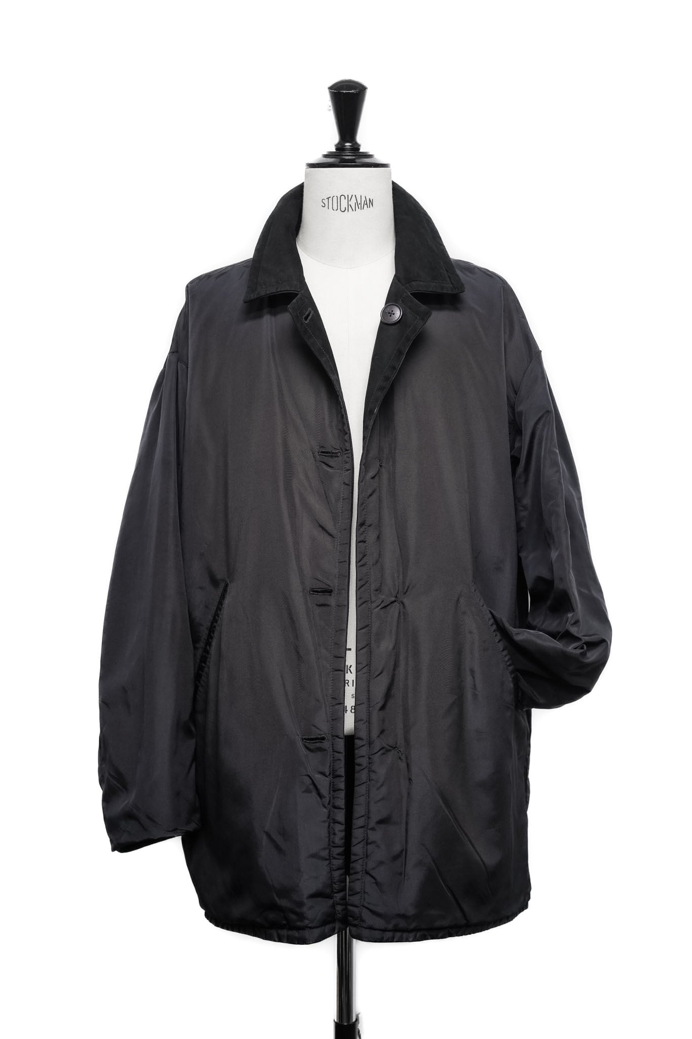 シルエットは、1990年代らしいゆとりのある分量感を持ちながらも、肩から袖へ滑らかに繋がるライン、身頃の縦を美しく見せるパネル配置によって、重たさを感じさせない軽快な落ち感を実現。