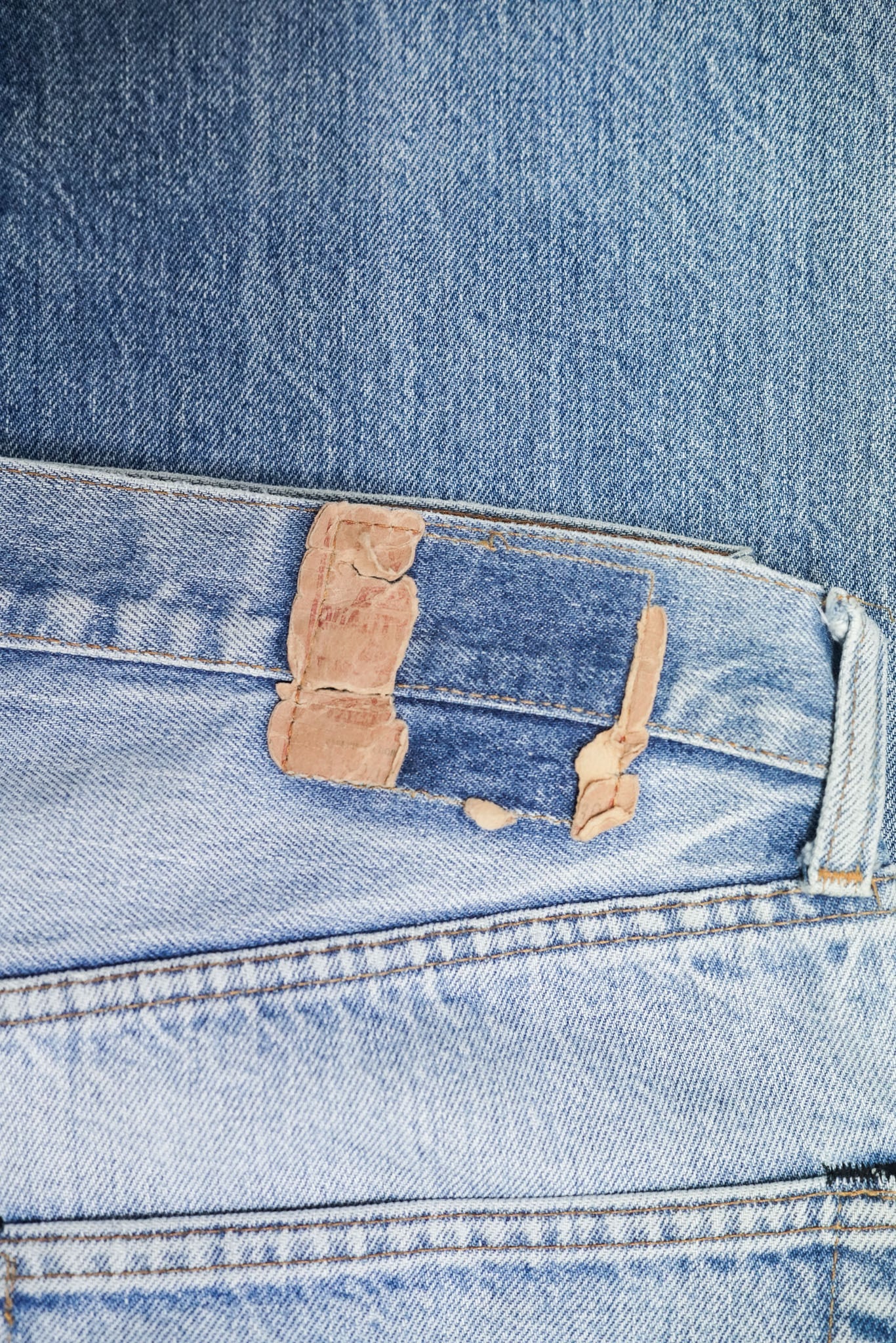 バックポケットにはLevi’sの象徴であるアーキュエイトステッチが入り、赤タブがアクセントに。紙パッチは適度に経年変化し、味わい深い風合いが宿っています。