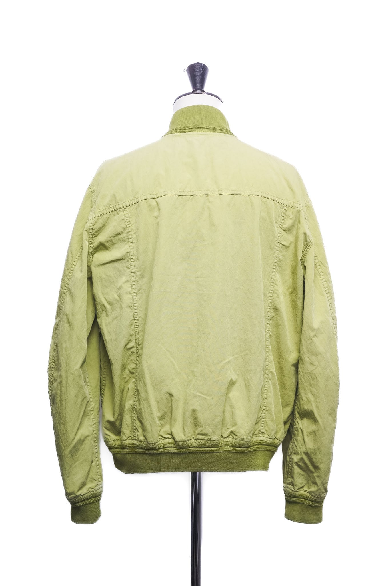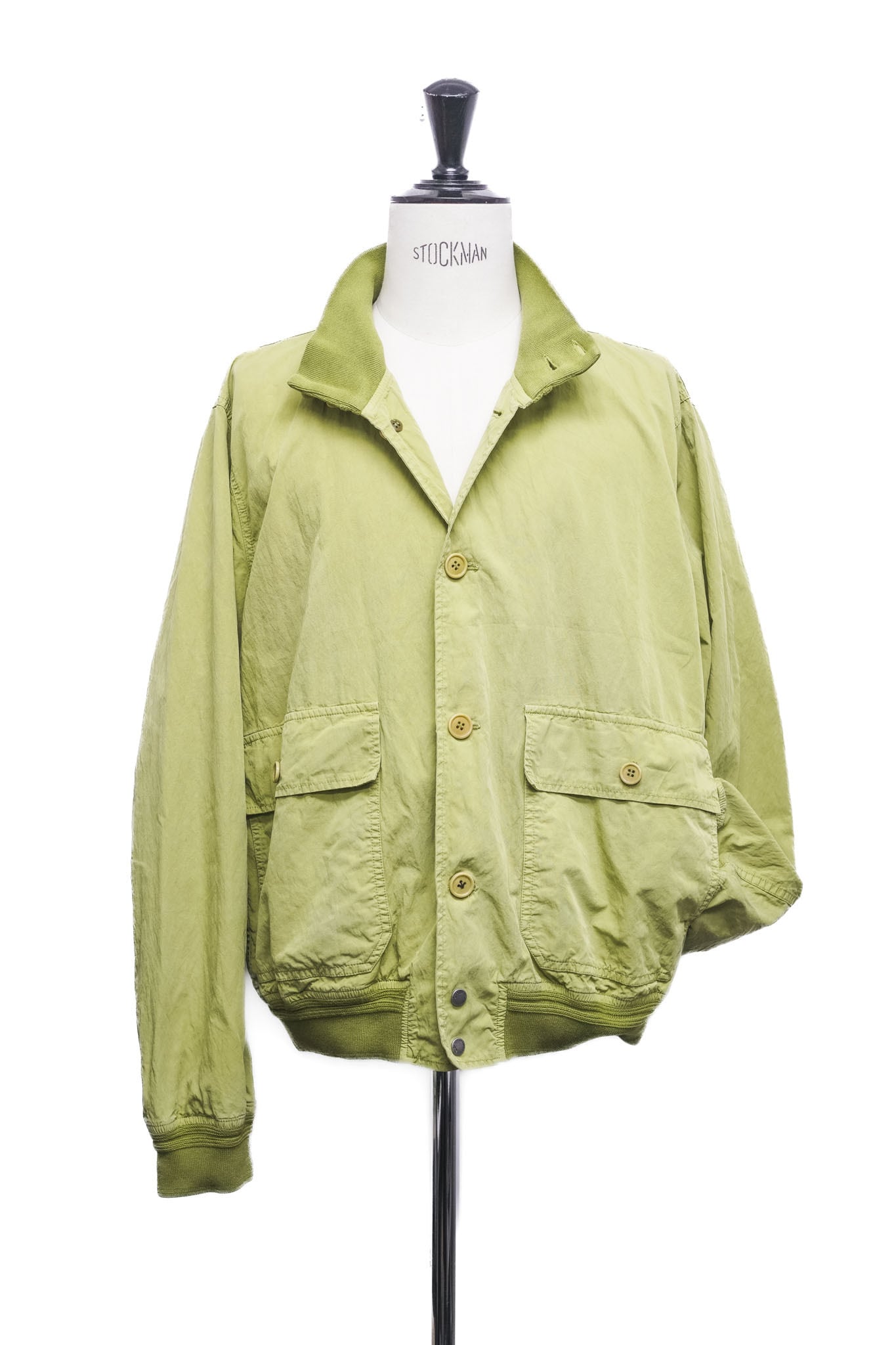 今回の個体においては、コットンナイロン特有の光を含むような発色が顕著で、袖や前立て、リブ周りに至るまで、立体的な陰影を演出しています。