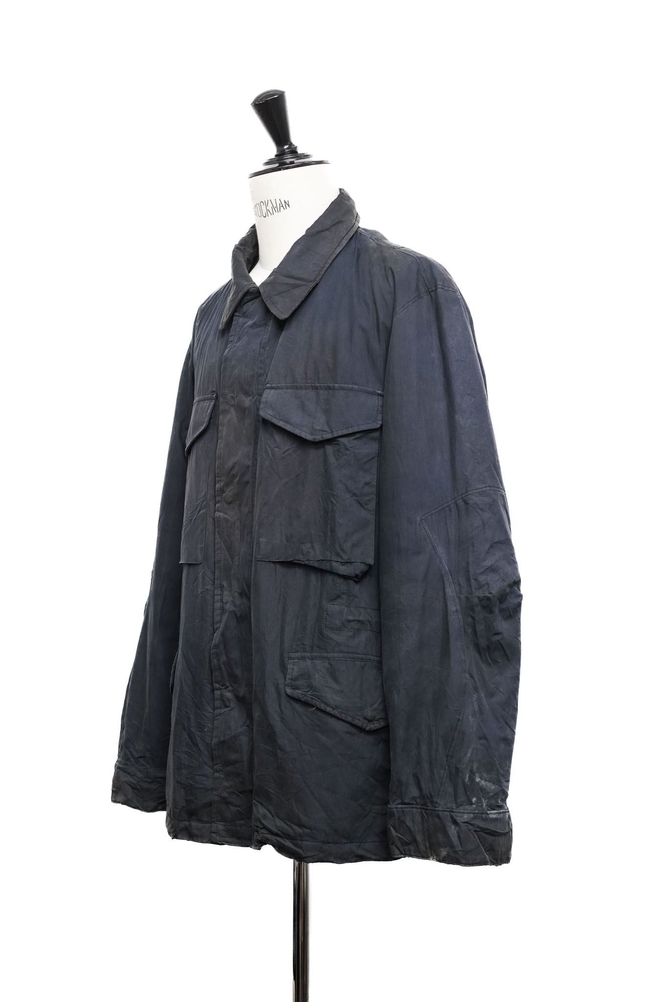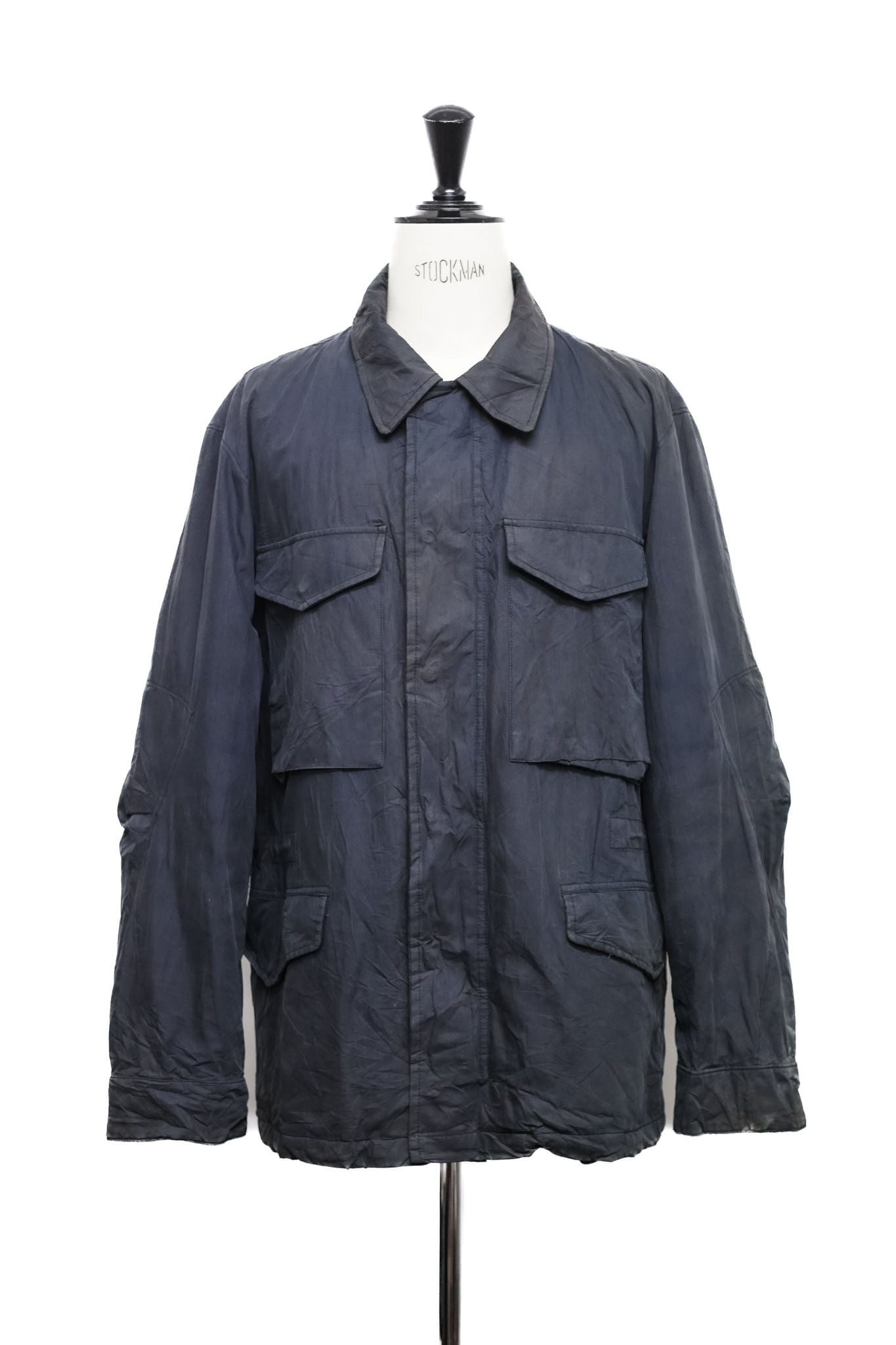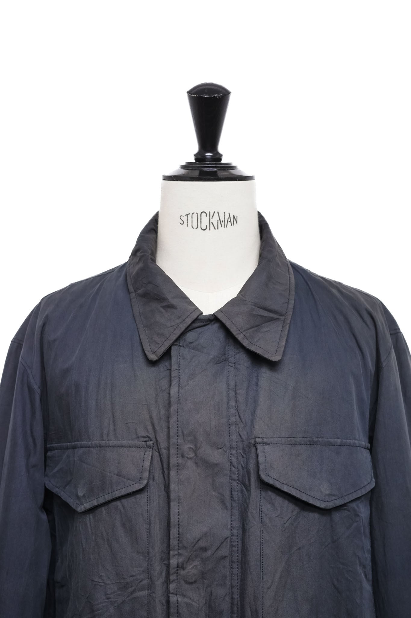 外観はミリタリーのフィールドジャケットを思わせる4つのフラップポケット構成ですが、ガーメントダイの濃淡がステッチワークやフラップの縁を柔らかく浮かび上がらせ、実物は写真以上に立体的な印象を与えます。