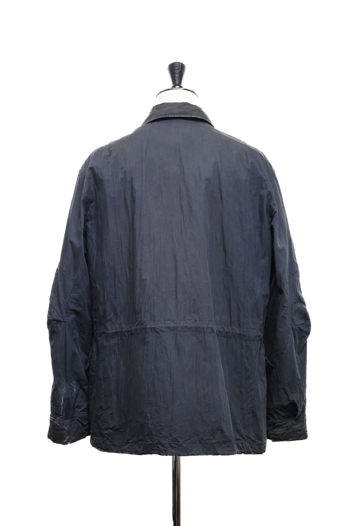 ガーメントダイによる深く沈んだネイビーの色調は、季節を経るごとに陰影を増し、布地全体に宿る独特のシワ感は、着る人の身体の動きに呼応して変化し続けます。