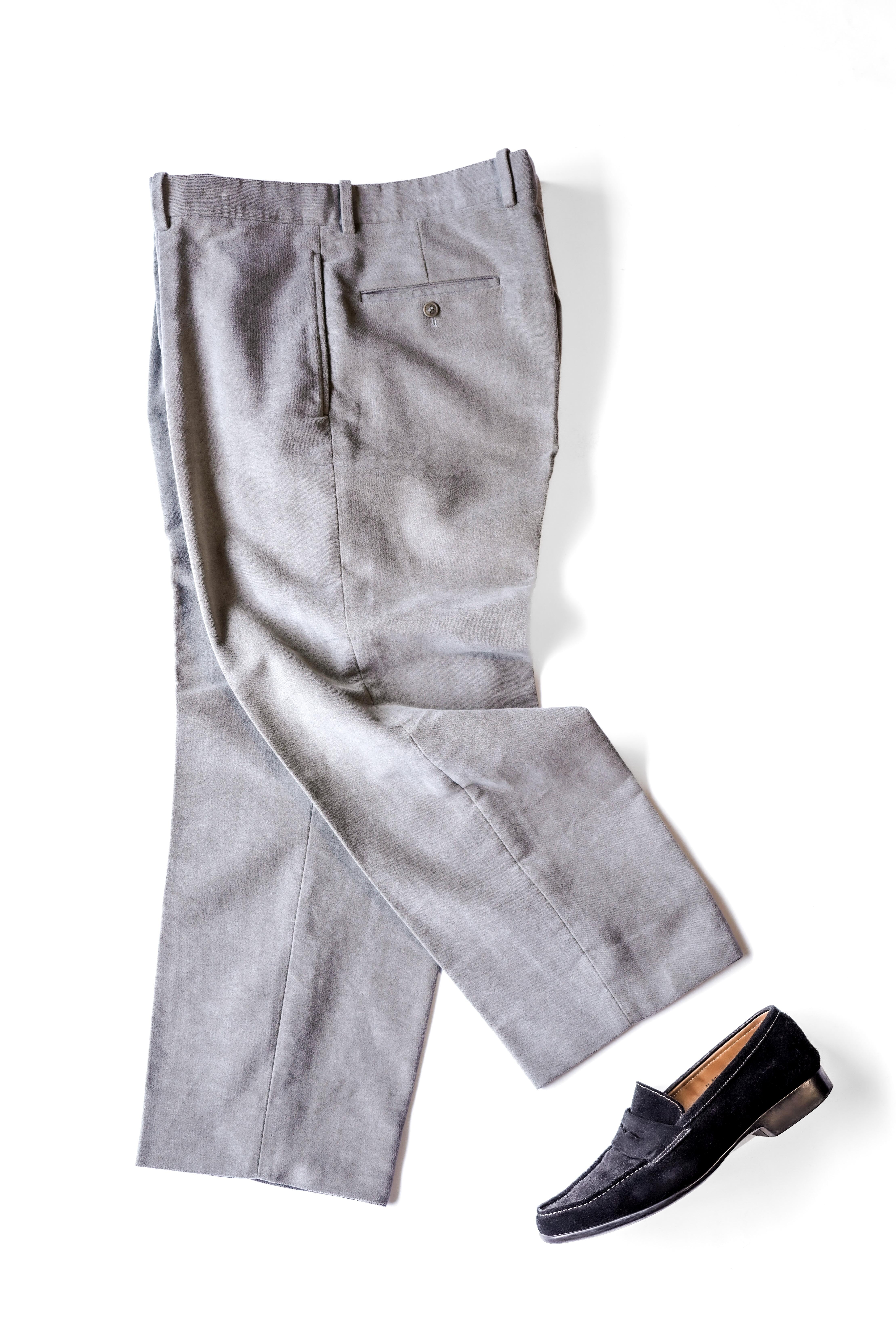 モールスキン特有の密度と粘りを備えながら、ウールならではのしなやかさが加わることで、重さを感じさせない柔らかな穿き心地を実現しています。