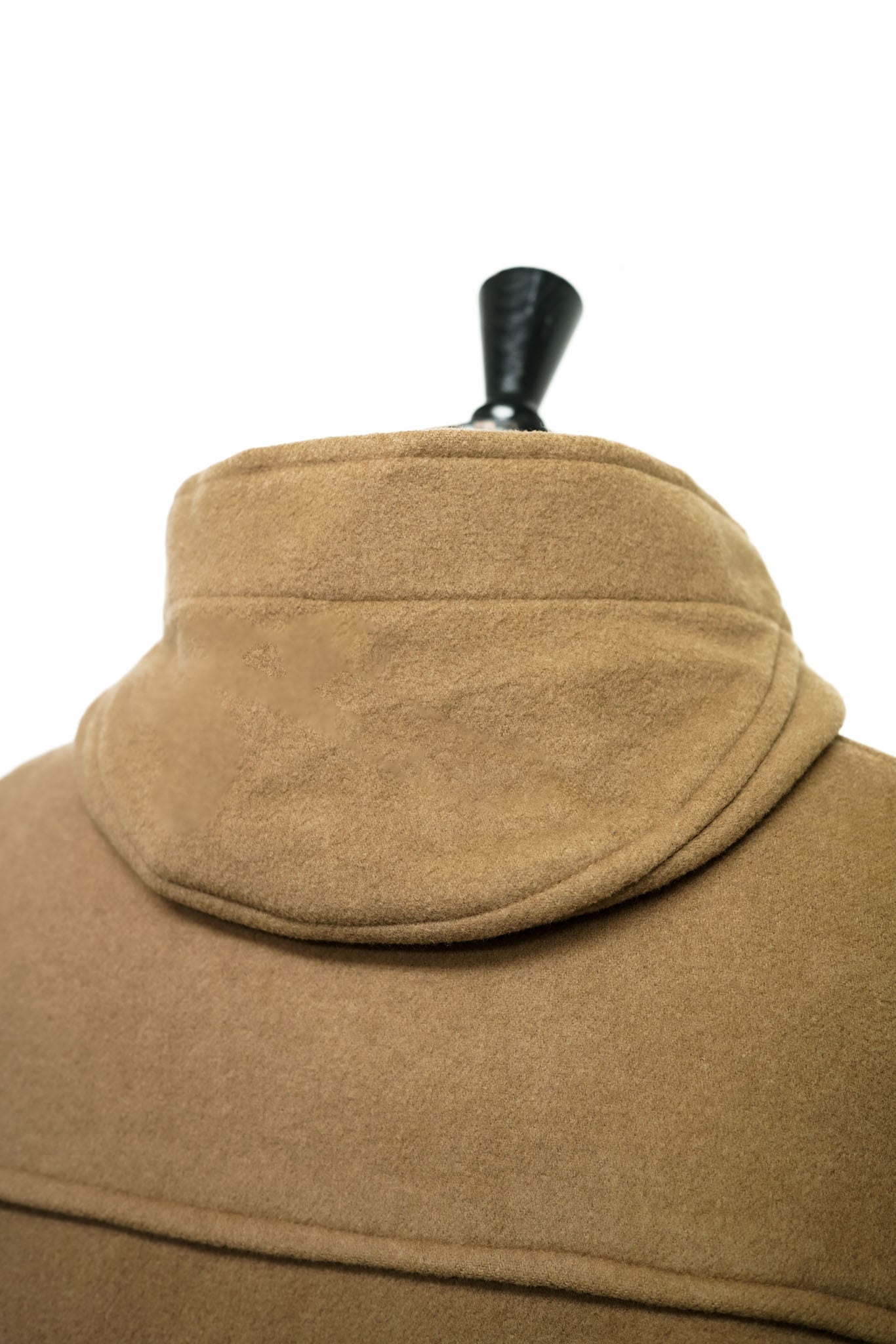 素材には、当時の英国アウターらしい上質なウールメルトンを使用。過度な重さを排した適度な肉感で、70〜80年代のダッフルに見られる無骨さよりも、日常着としての着やすさが優先された生地感が特徴です。肩の落ち方や身頃の収まりも自然で、コートとしての完成度の高さを感じさせます。