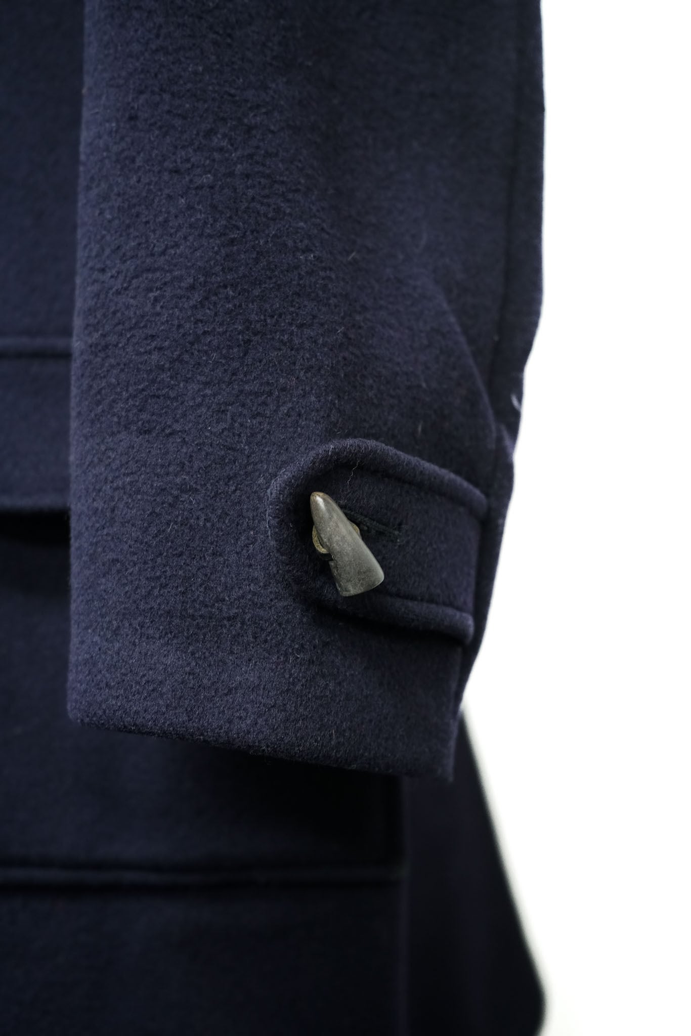 シルエットは肩を強調しすぎない、当時らしいナチュラルなストレートライン。スーツやジャケットの上からでも無理なく羽織ることができ、いわゆる“学生的なダッフル”とは一線を画す、大人のためのダッフルコートです。
