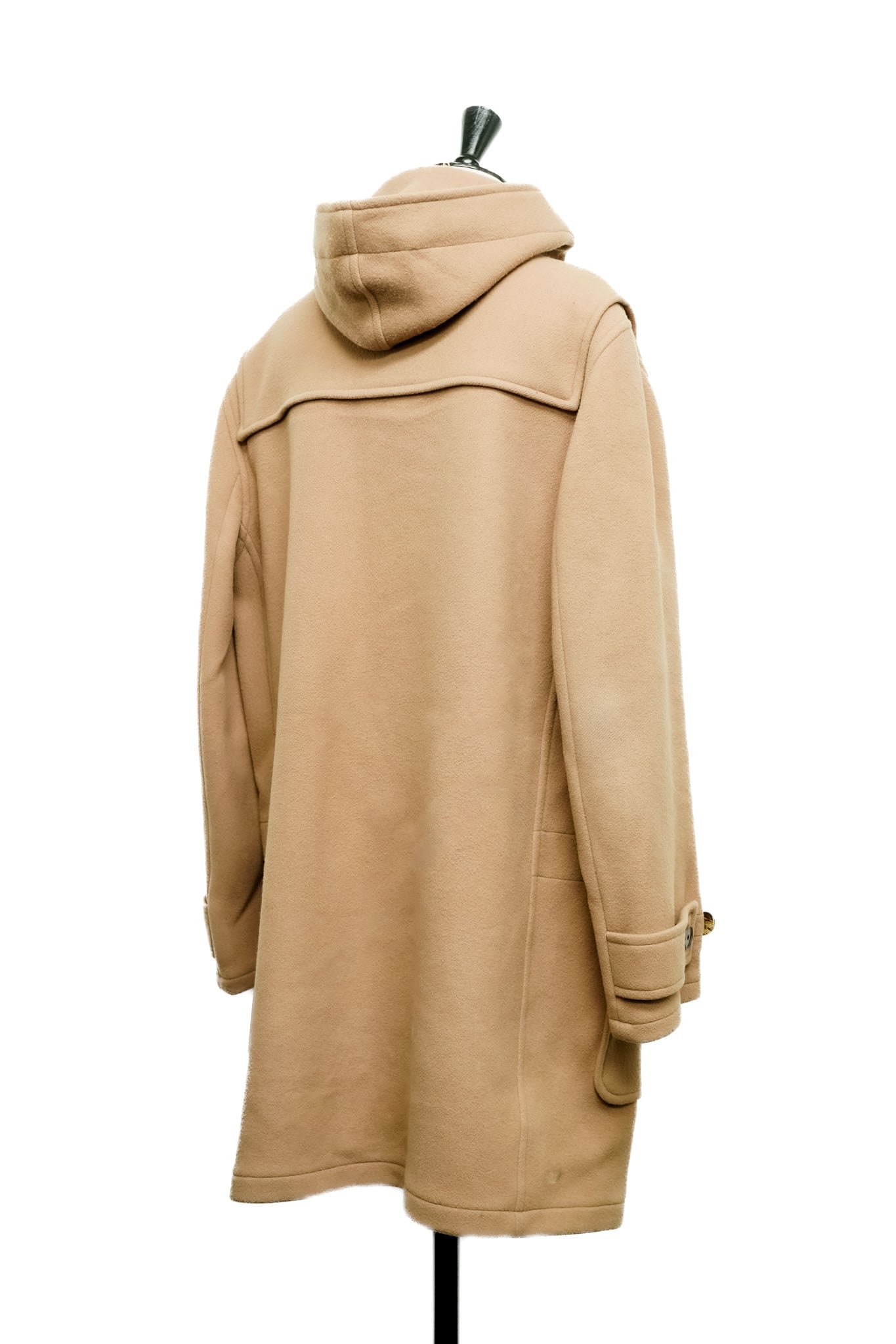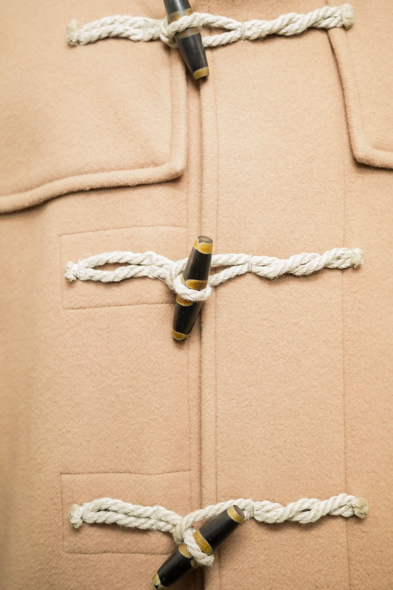 1950年代の英国製ダッフルは、第二次世界大戦後の民間流通においてもなお、海軍由来の実用性を色濃く残していた時代のもの。本作では、その時代特有のバランス——長めの着丈、余白のある身幅、実用性を優先したディテール構成——を忠実に踏襲しています。