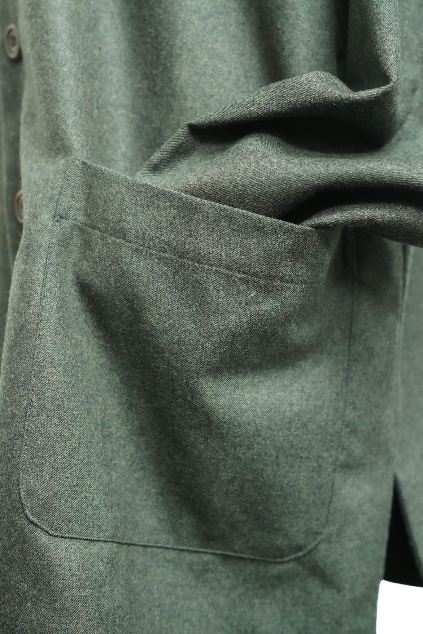 軽さだけを追求した現代的なカシミヤとは異なり、布そのものに重さと密度があり、着用した際には生地が自然に垂れ下がりながら、身体の動きに応じて静かに揺れます。